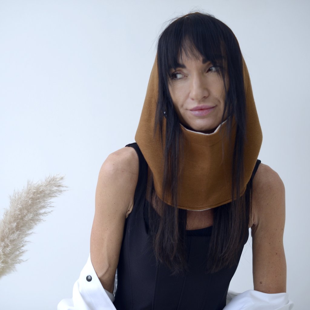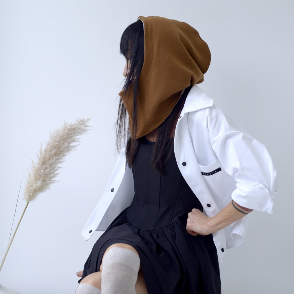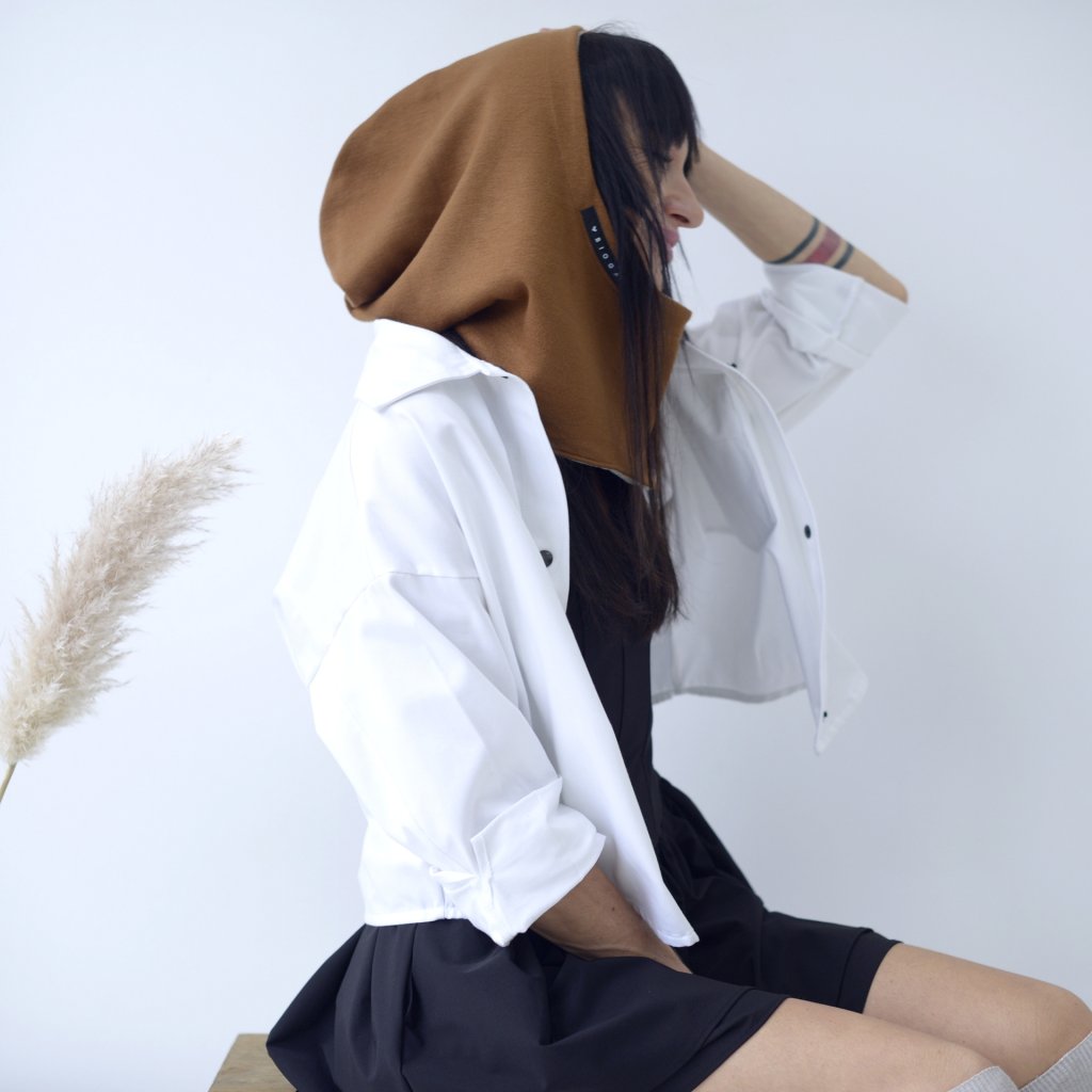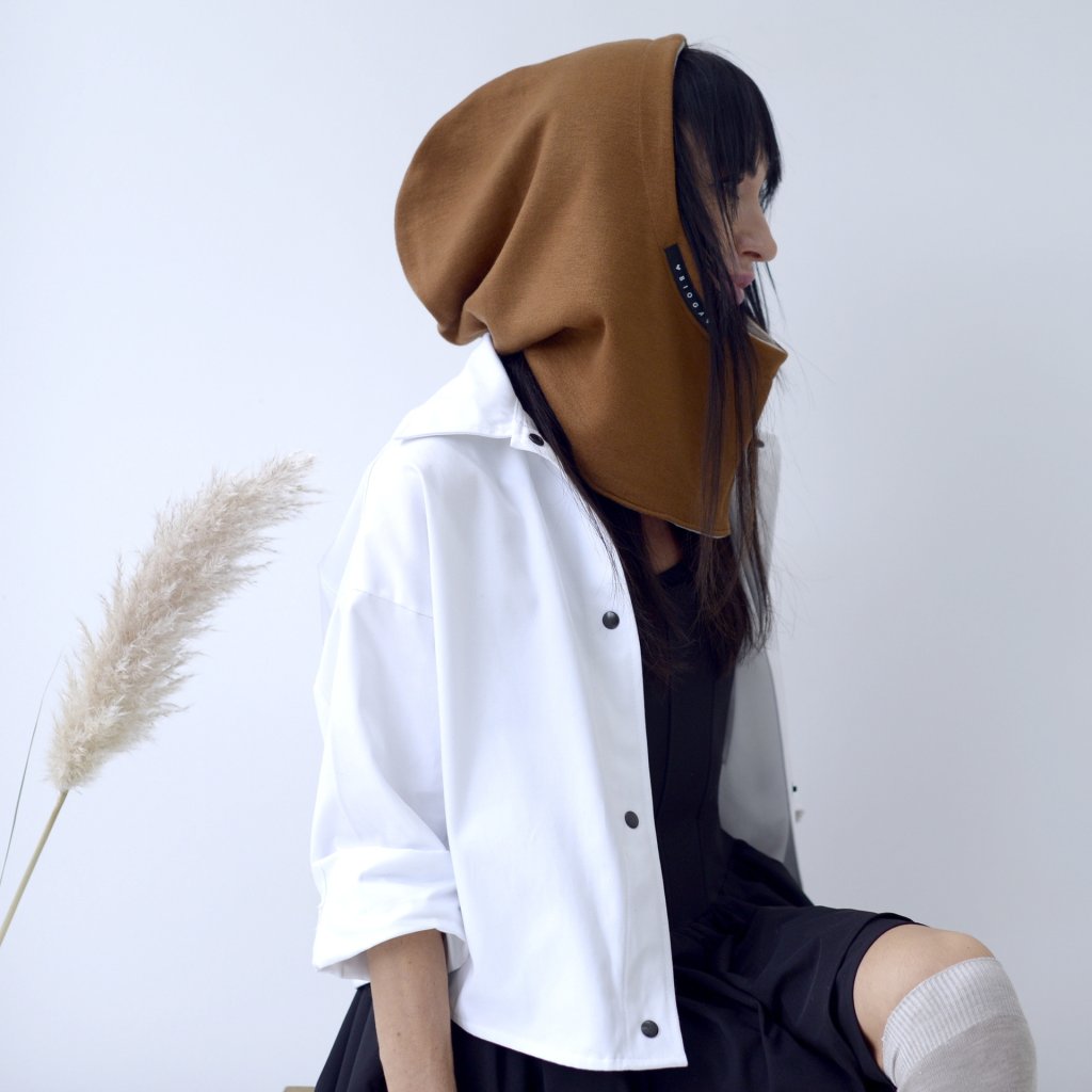 Taková kapuce- čepice nákrčník v jednom v spíš neitrálních tonech + černá. Skvěle se doplnují s mikinami jak s kapucí tak bez. Nebo si vytvořte sexy outfit s krátkými šatičkami kozačky podkolenky a k tomu velký vlněný oversize svetr. Možnosti a tipy na outfity Vám brzy představíme.