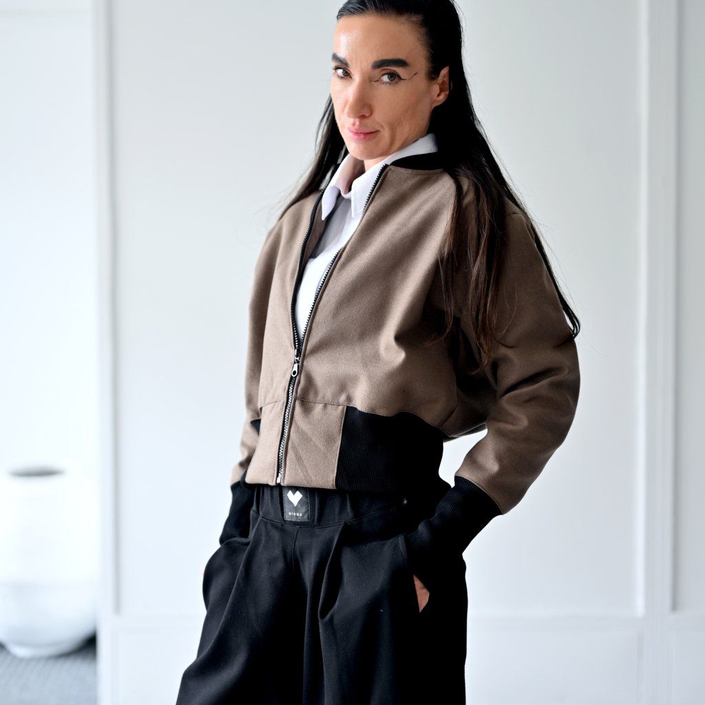 designový bomber v limitované edici jen velikost SM. Kratší střih do pasu formuje siluetu a dává vyniknout proporcím, zatímco zemitý odstín tkaniny působí klidně, přirozeně a nadčasově.