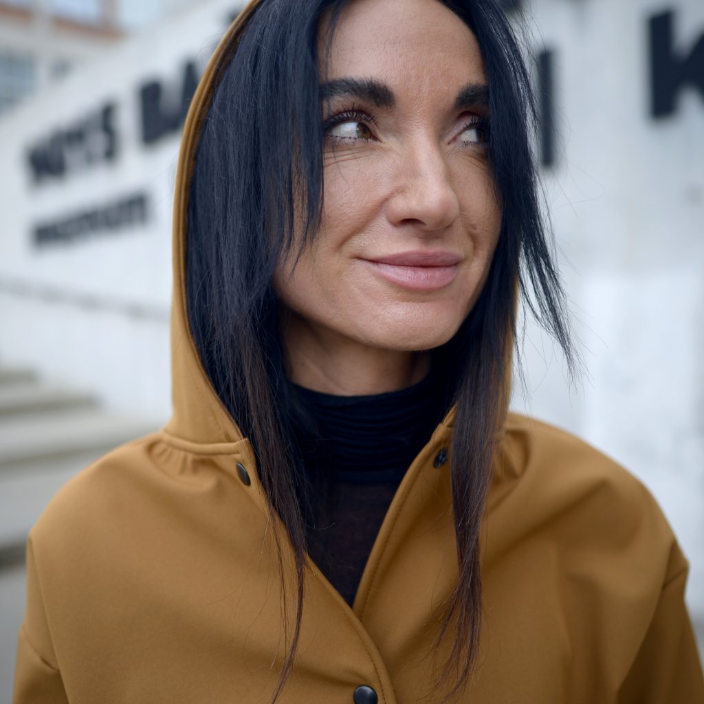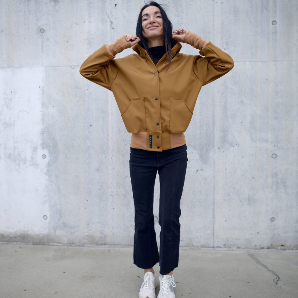 Bomber bunda do pasu ze zatepleného softshellového materiálus kapucí, Spodní lem + rukávy do pružné manžety.
