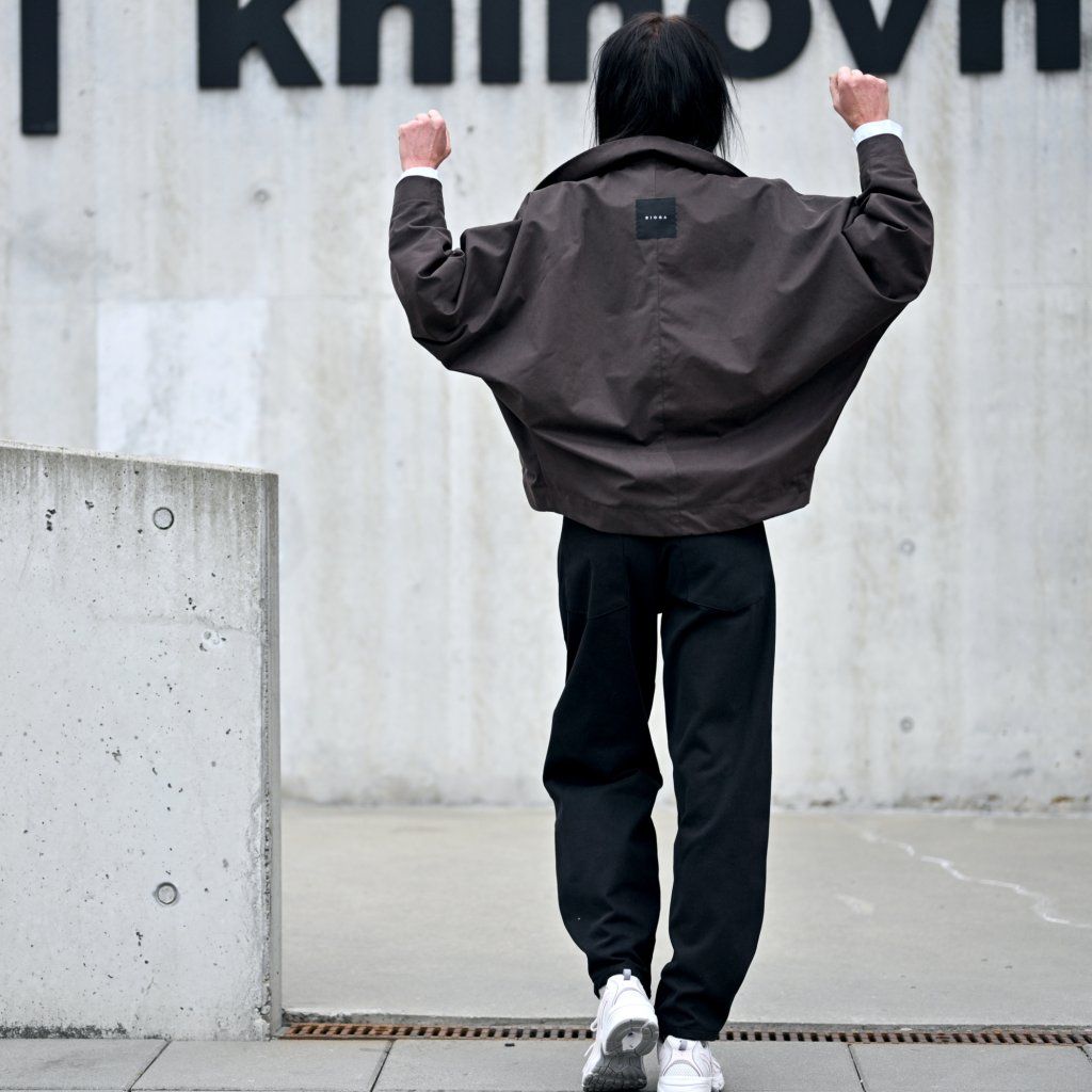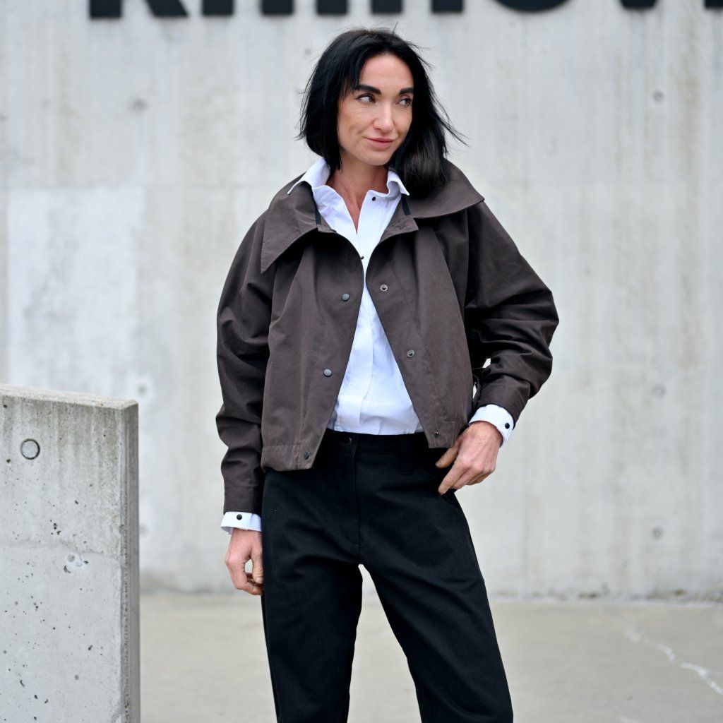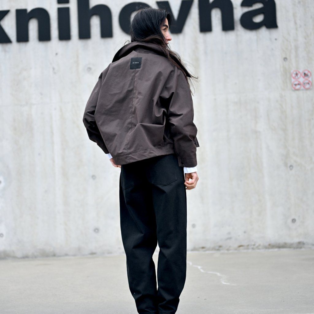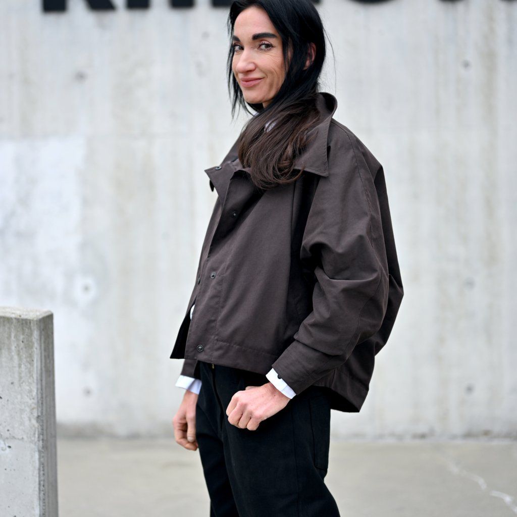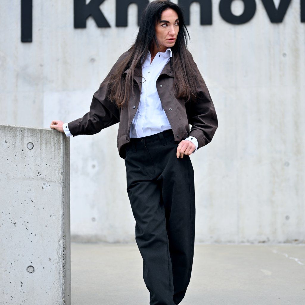 OLVIDA podzimní lehčí bunda- trenčkot cropp z pevnějšího pláštovky, v oversize střihu, přední díl je mírně vykrojen a zadní díl delší do balonového tvaru, unikátní střih tomu dává originalitu a nadčasový design. Zapínání na patentky. A výrazným prvkem je velký límec a lištová kapsa nádherně zapadne do designu.