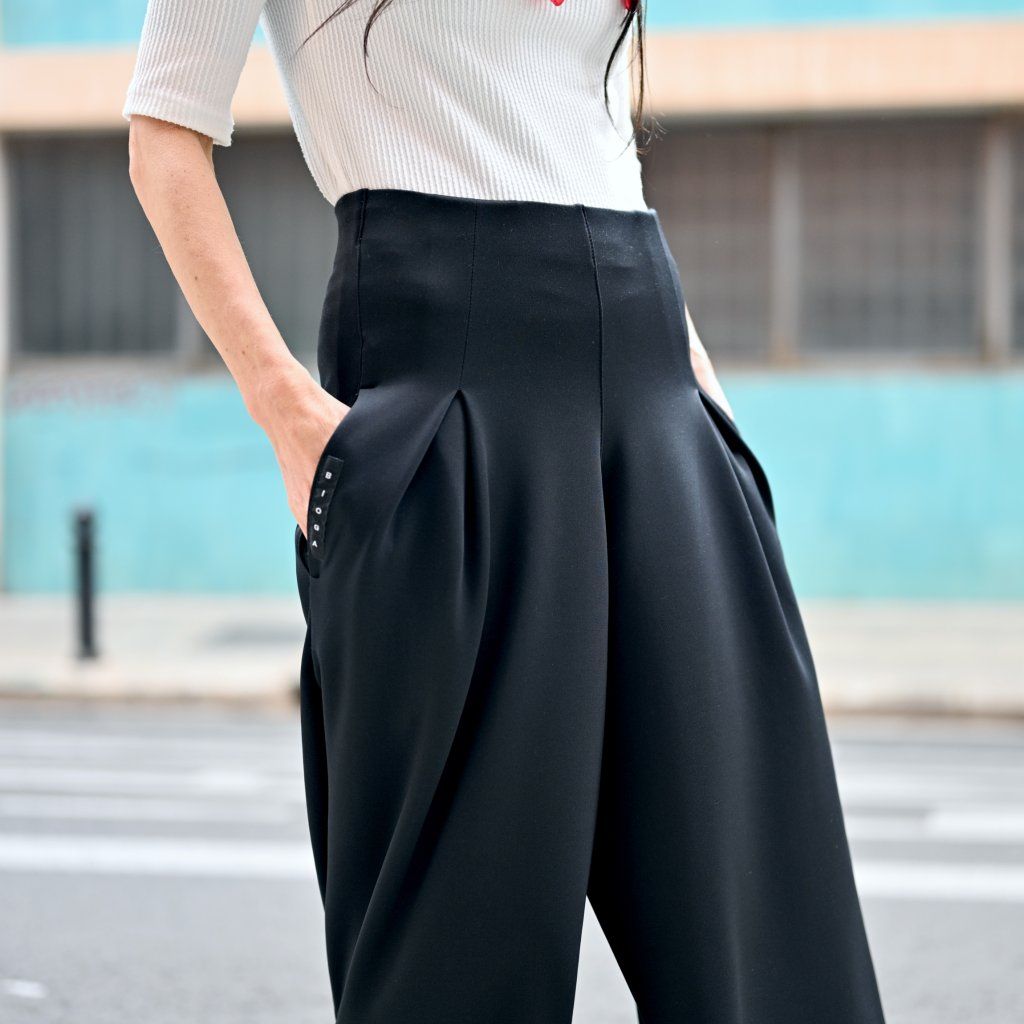 Kalhotová sukně AMANTES - z viskozového materiálu materiálu, extra široké nohavice, v pase do pružného pásku s jemně naskládanými záševky. V bocích pohodlné kapse.