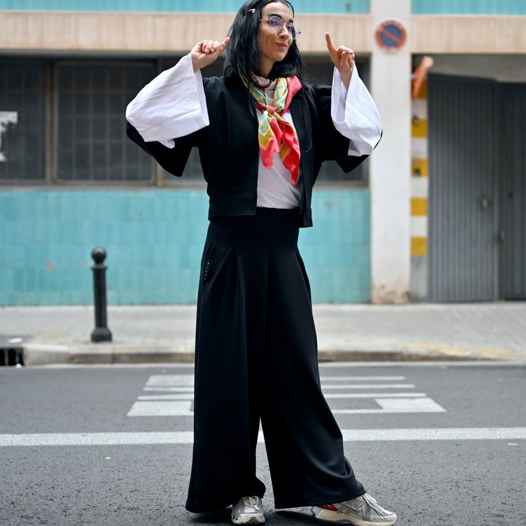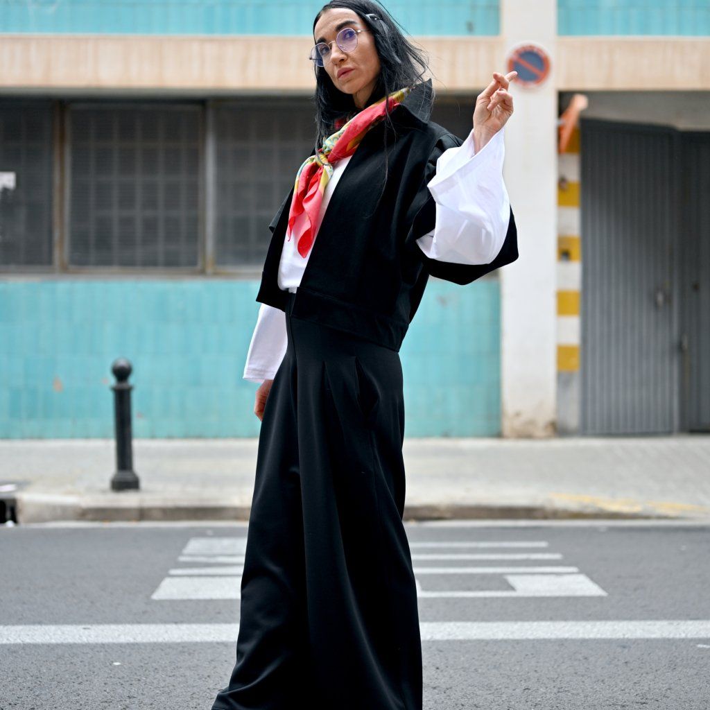 Kalhoty Amantes je naše žhavá novinka – sofistikovaný kousek s jemně nabíranými dlouhými rukávy zakončenými patentkami a límečkem do stojáčku. Elegantní střih, příjemný materiál a decentní extravagance vytvářejí výrazný model, který využijete do práce, na schůzku i večerní příležitost.