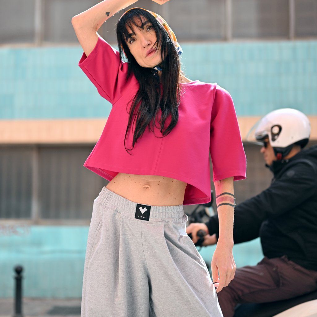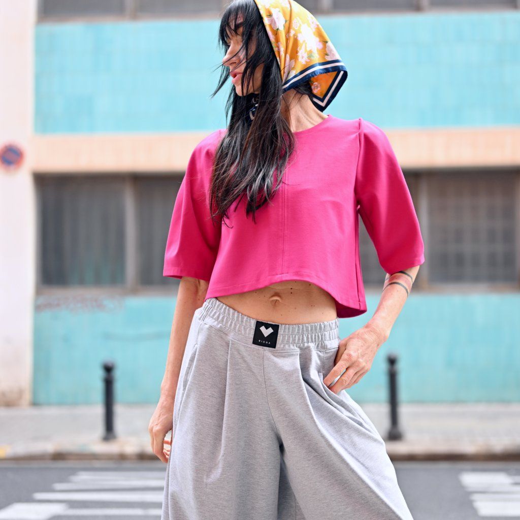 Kalhotová sukně PORTERO - z bavlněného materiálu, extra široké nohavice, v pase do pružného pásku s jemně naskládanými záševky. V bocích pohodlné kapse.