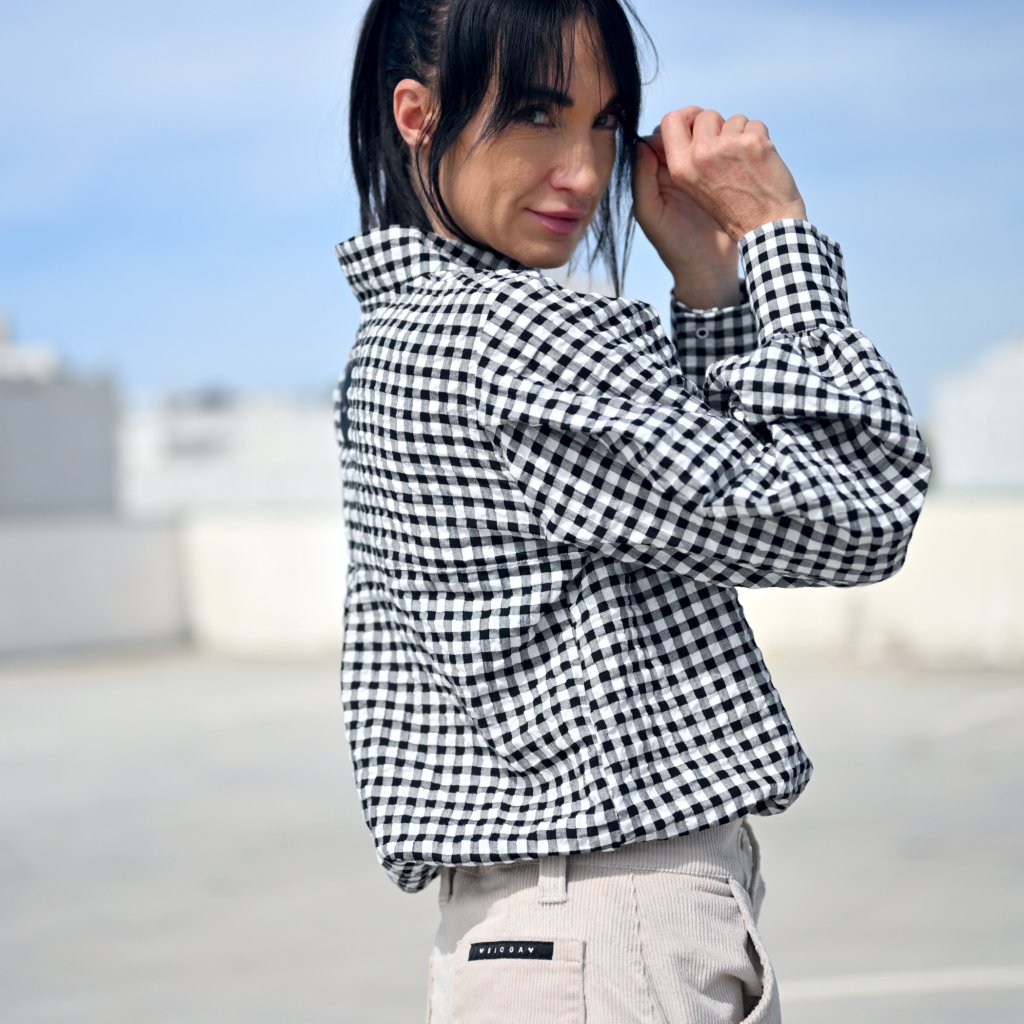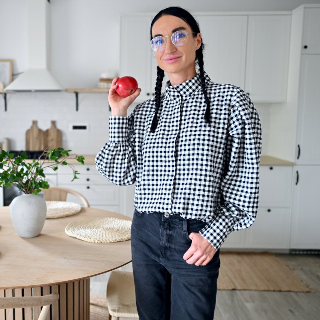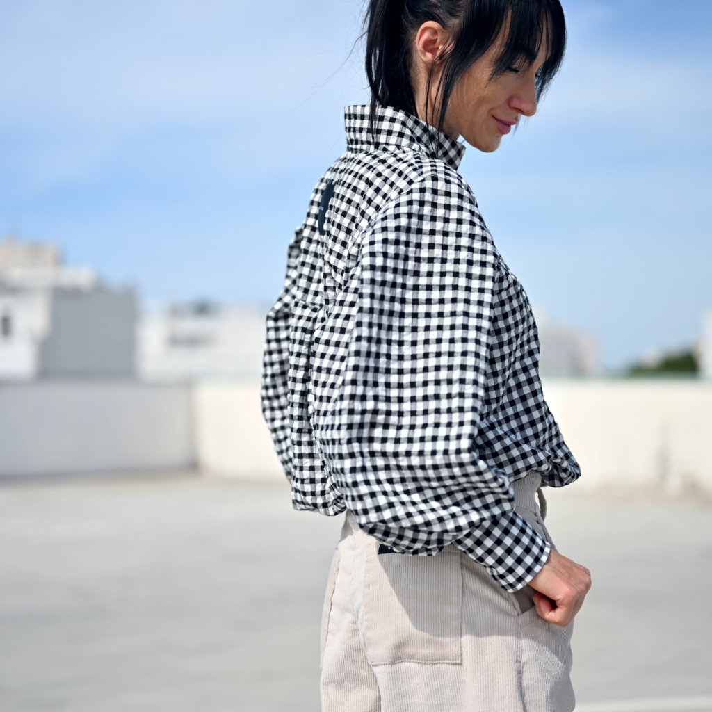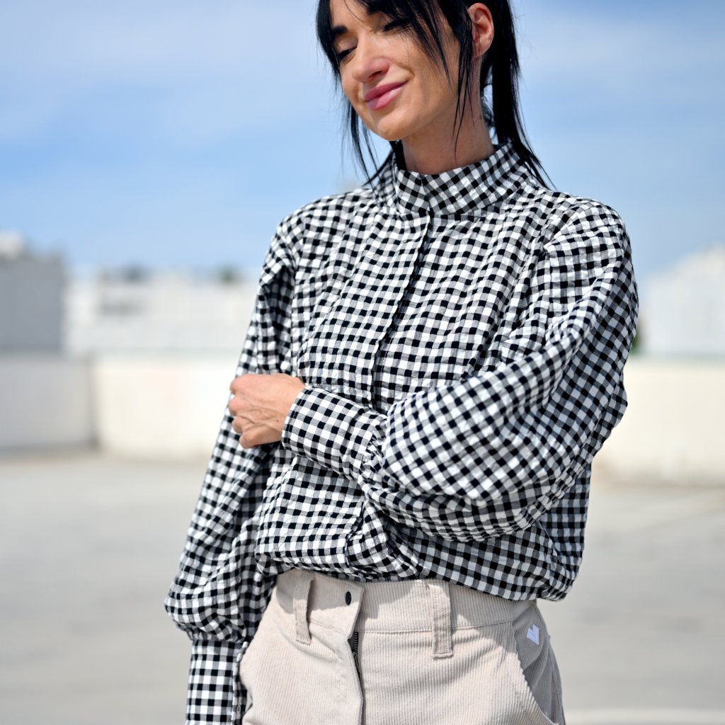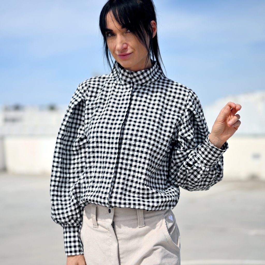 Košile Evaluna - je naší žhavou novinkou. Slušná elegantní košile s jemně nabíraným, dlouhým rukávem na zapínání patentkami. Límeček do stojáčku.
