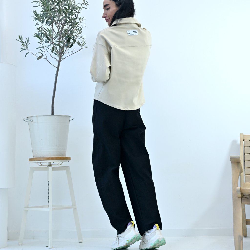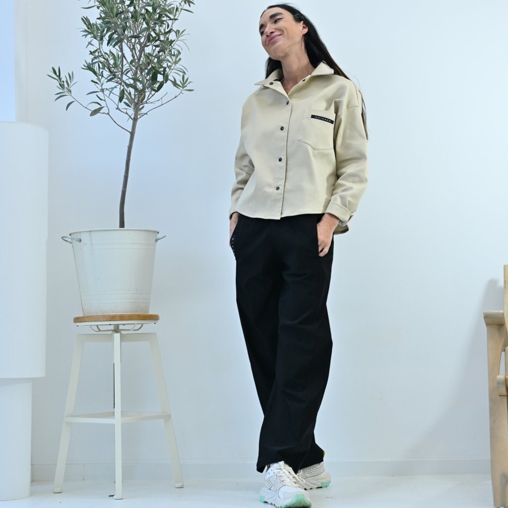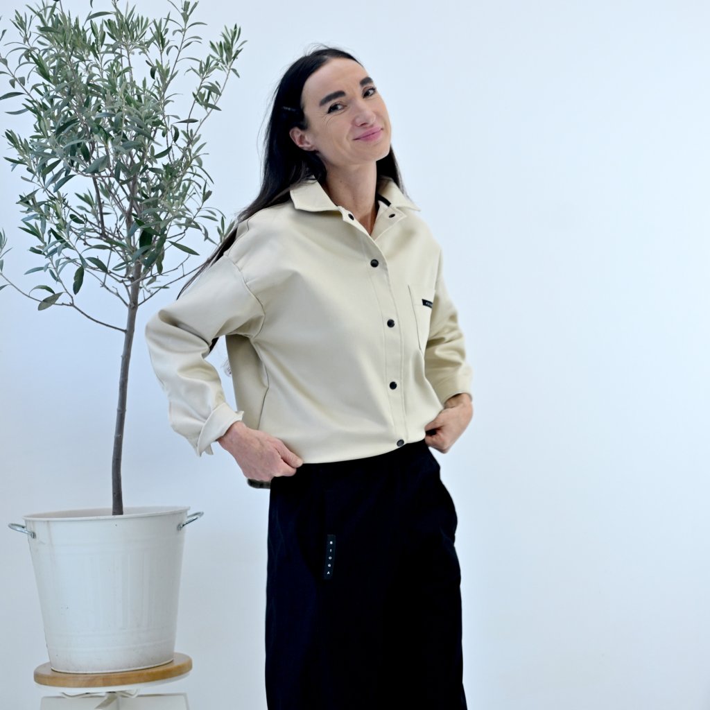 Košile PROXIMA ve stylu worker je spíš svrchní vrstva, pod kterou můžete nakombinovat jednoduché topy, body, lehký světřík. Báječně se doplnují s kalhotami SEGURO nebo PORTERO. A samozřejmě nesmí chybět důležitý doplněk stylové tensky, botts ve stylu Martens. Tím ten outfit upoutá extrémní pozornost.