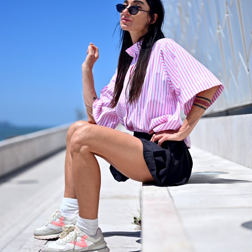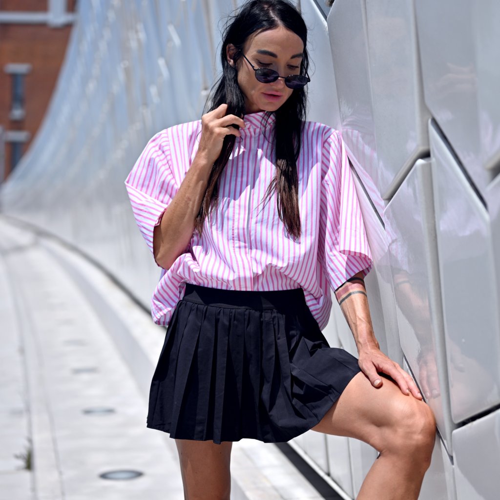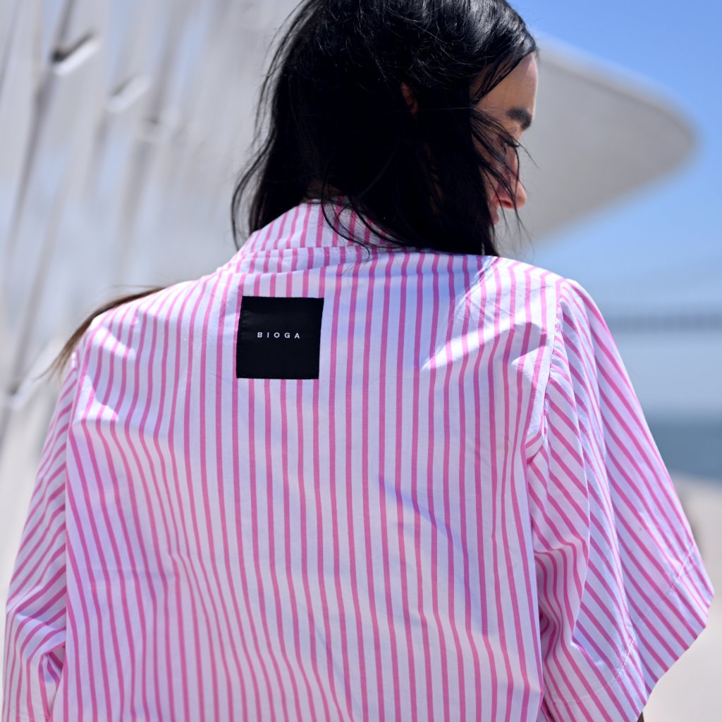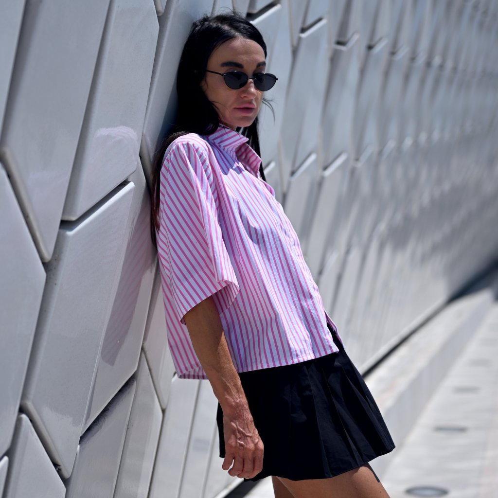 Košile LISBOA v oversize střihu, límec do stojáčku, skryté zapínání na patentky, širší pohodlný rukáv po loket.