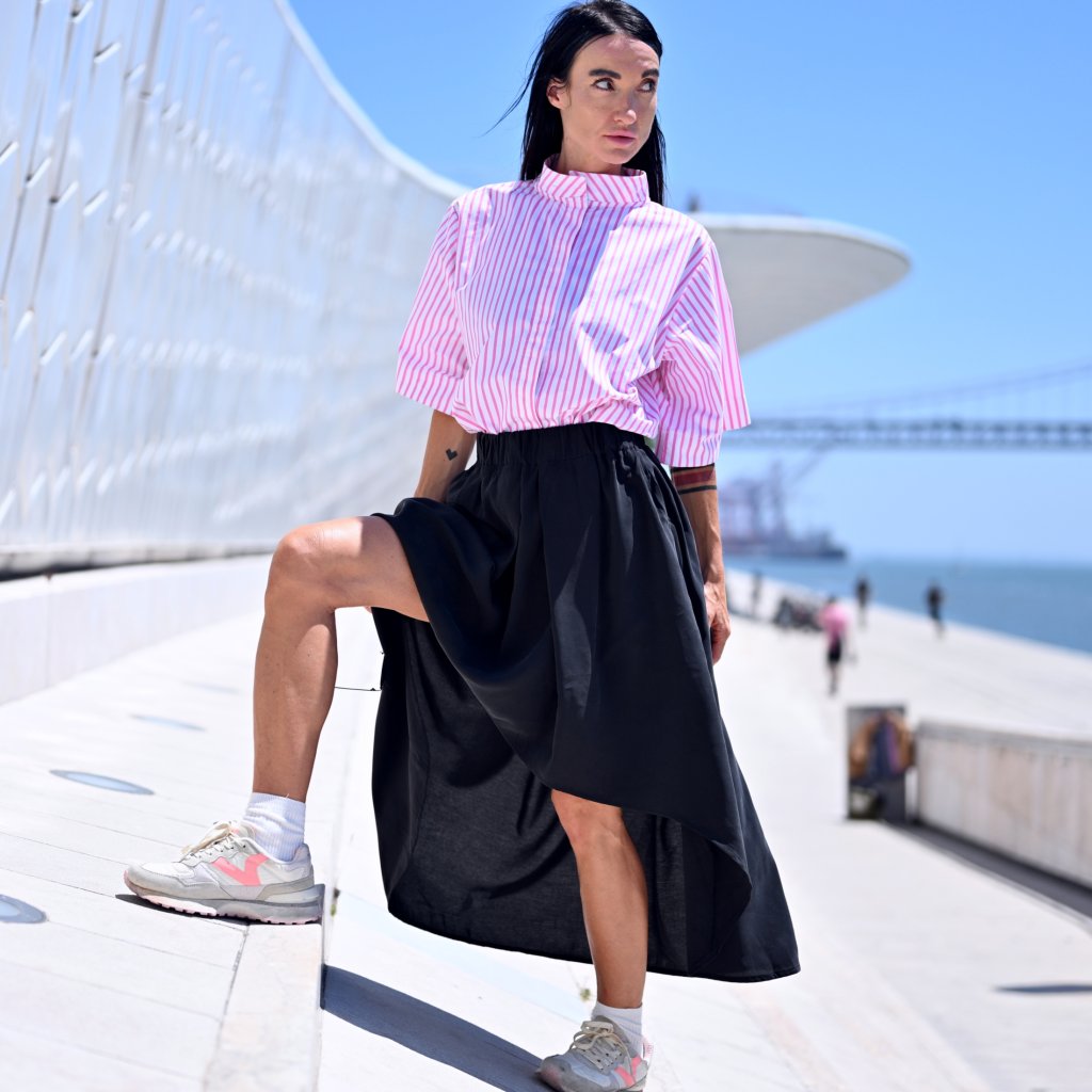 Vyrobena s maximálním respektem k planetě, životnímu prostředí, lokálně, holkama z naší dílny. Vytvořena tak, aby vydržela generaci a vaše dcera ji našla ve Vaší skříni obnošenou, ale stále krásnou a vezme ji na svou dovolenou v roce 2052 . Třeba právě do Lisabonu.
