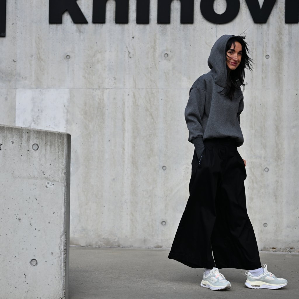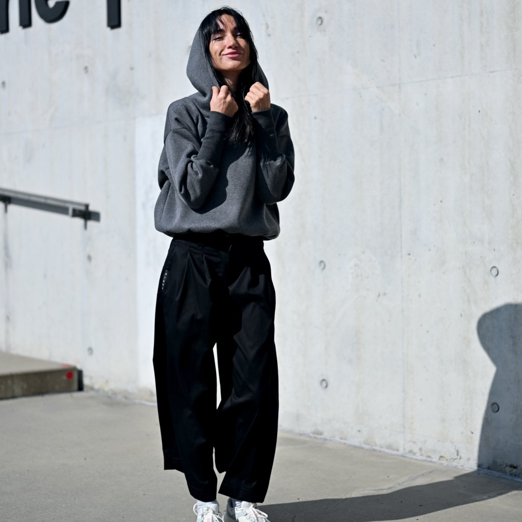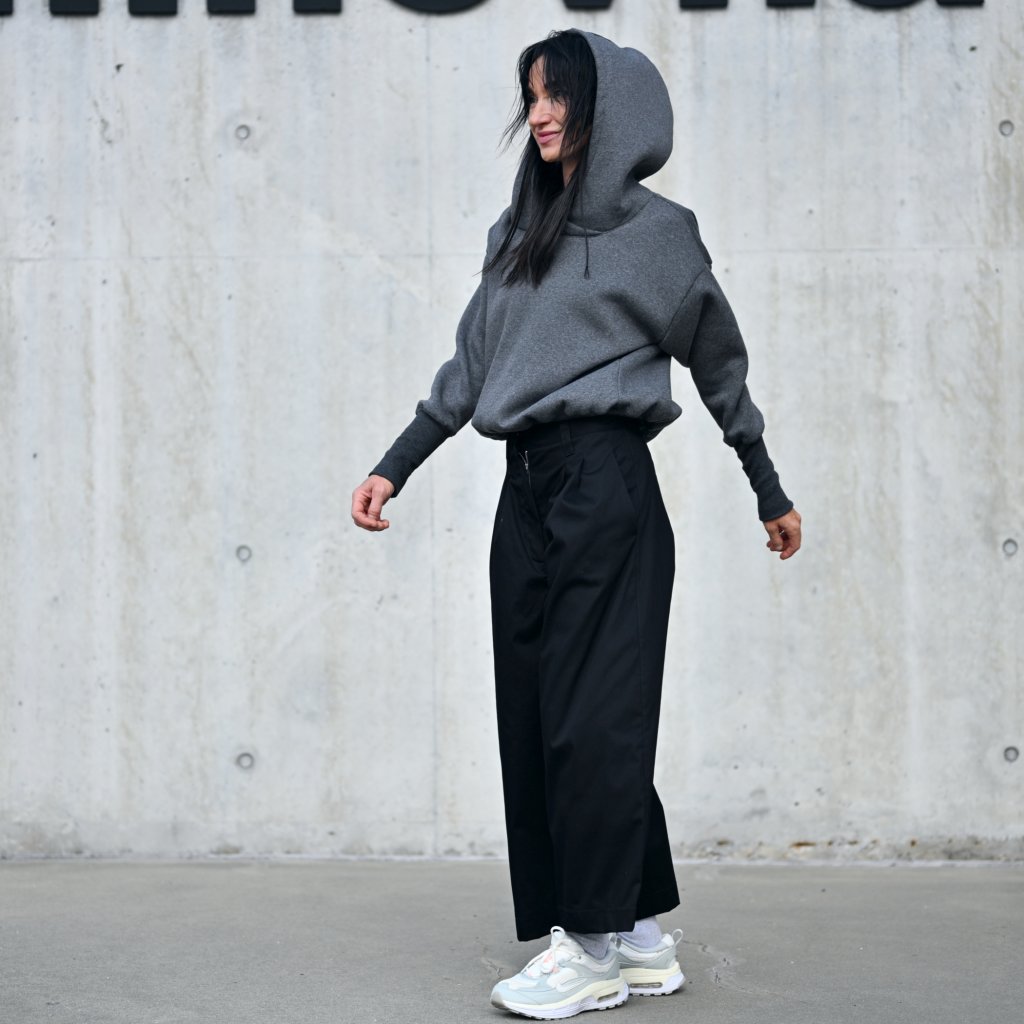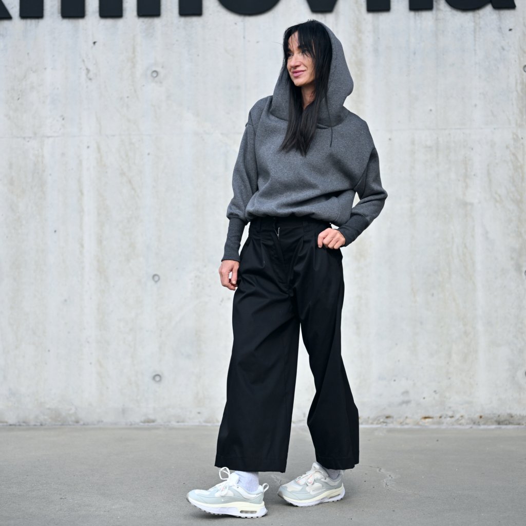 Mikina LOSIENTO prošla drobnými změnami, malinko jsme vylepšili kapuci, zvětšili průkrčník s překříženým límcem- díky tomu netlačí, krásně sedí a netáhne na krk ... Dlouhé manžety na rukávech + spodní lem z bavlněného žebra v barvě materiálu.