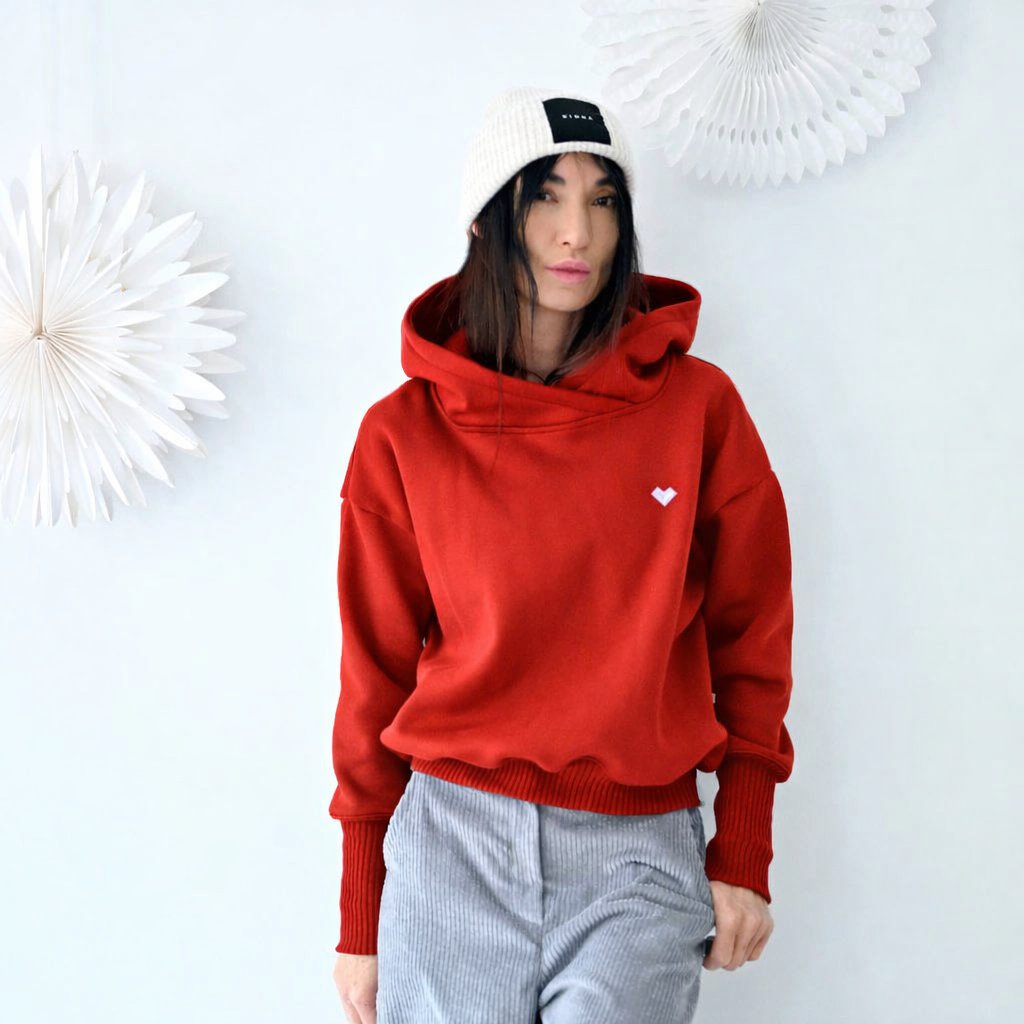 Mikina LOSIENTO s velkou kapucí, prodlouženými žebrovanými náplety na rukávech a ve spodní části. Čistý střih bez kapes podtrhuje její nadčasovost a nechává vyniknout detailům.