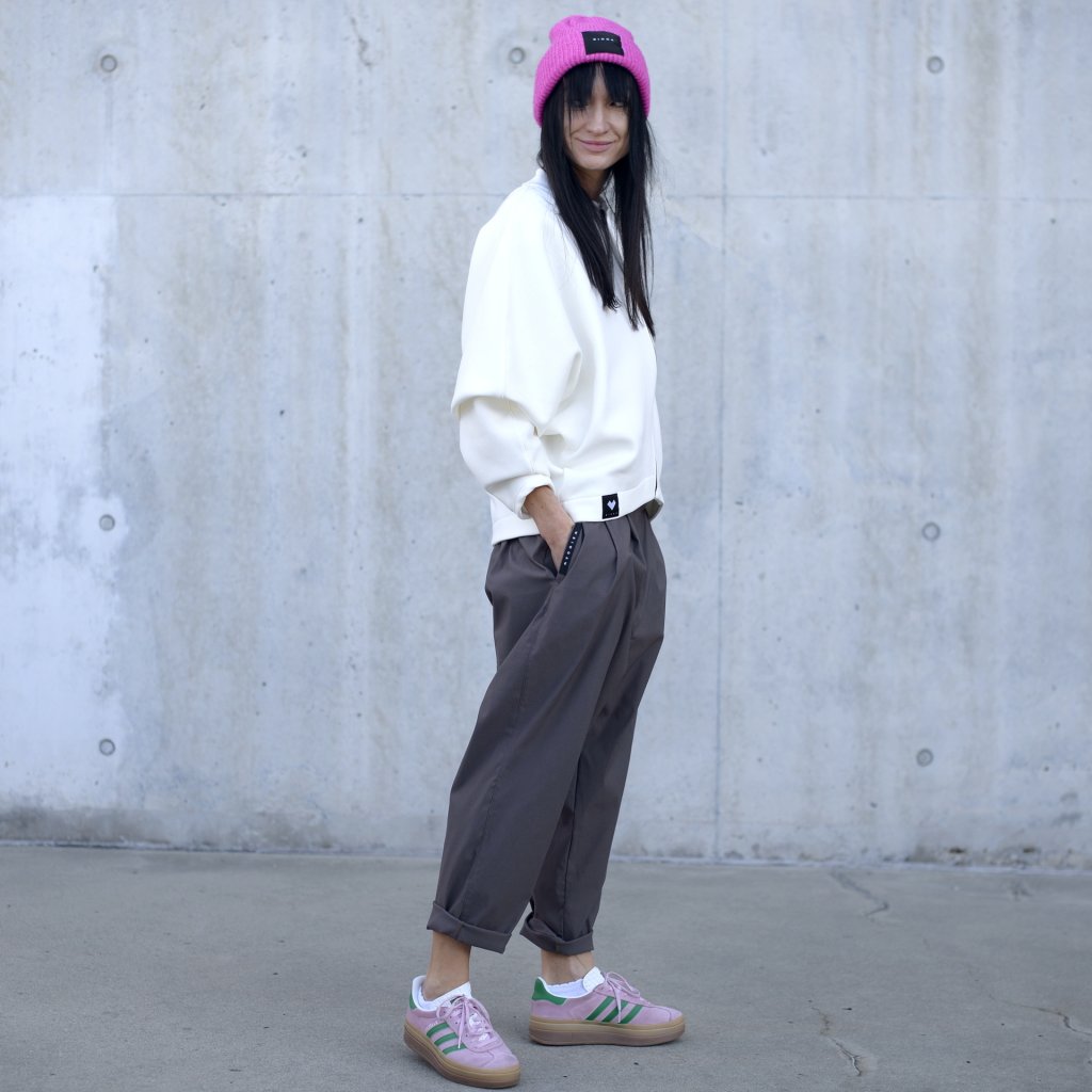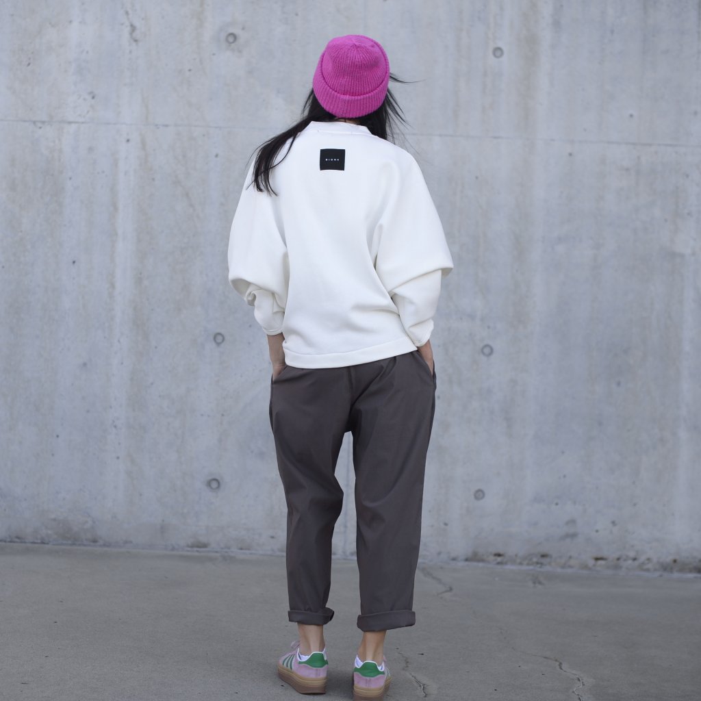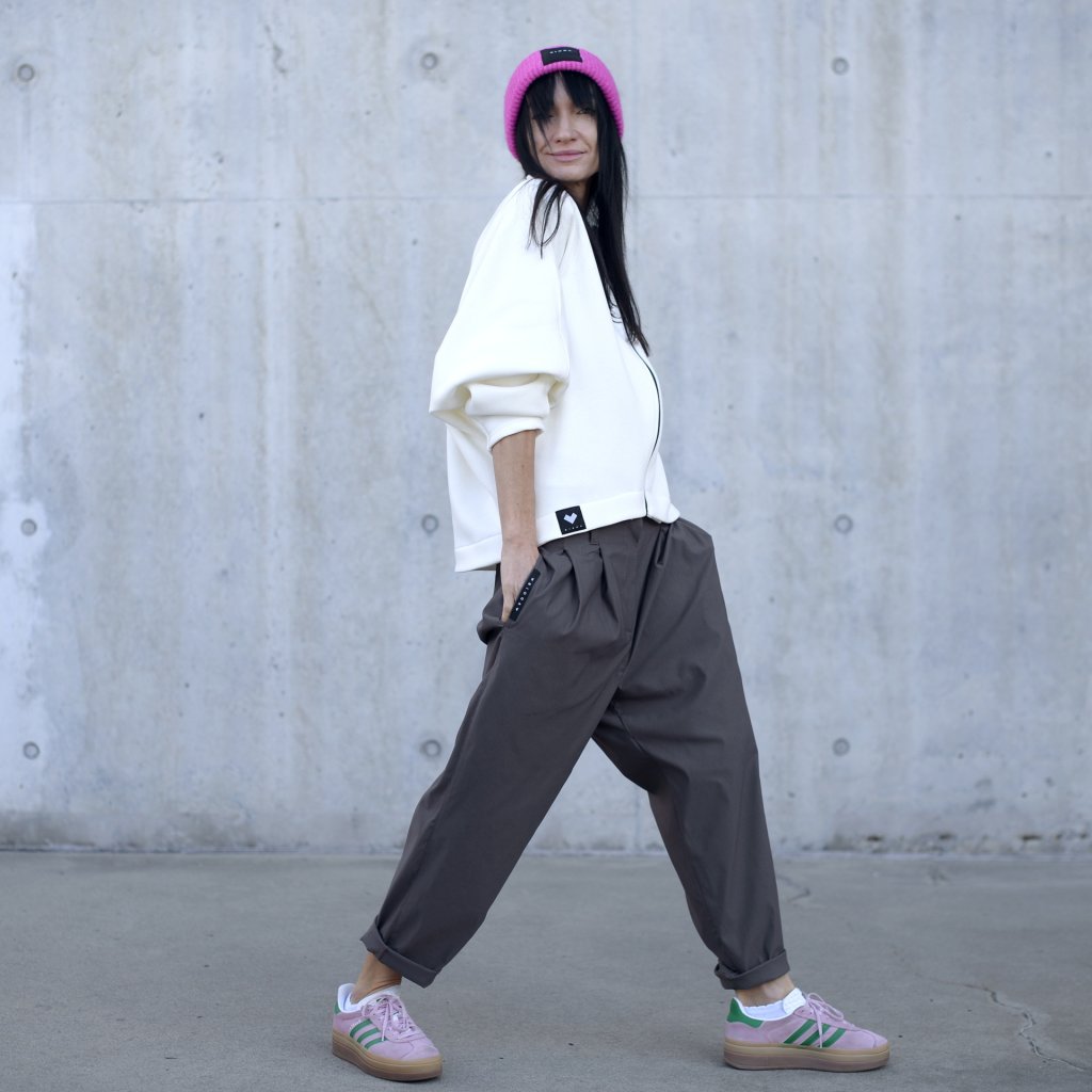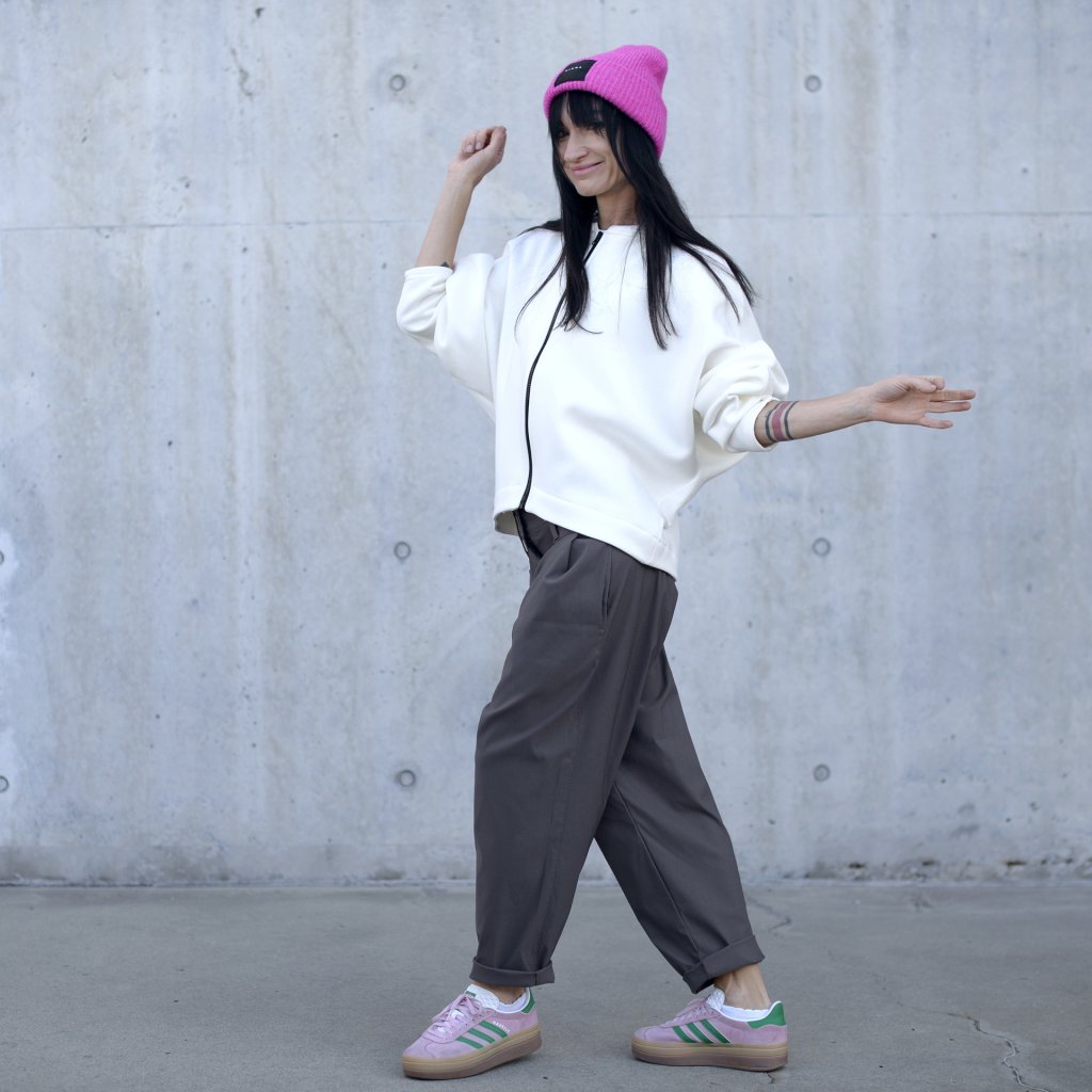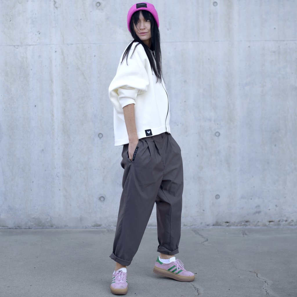 Mikina v oversize střihu, bez kapes s výrazným prvkem kostěným černým zipem, který se krásně doplnuje z černou etiketou. Minimalistická kombinace,a le přitom upoutá pozornost.