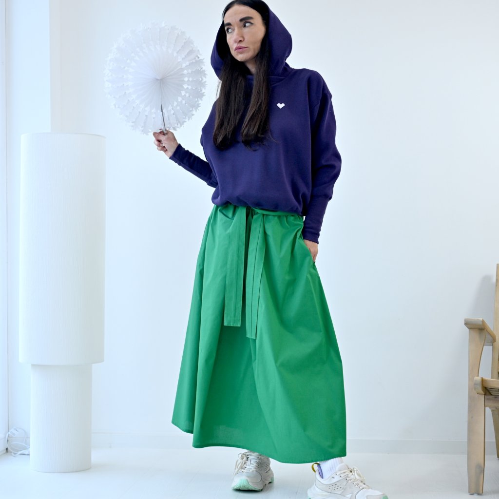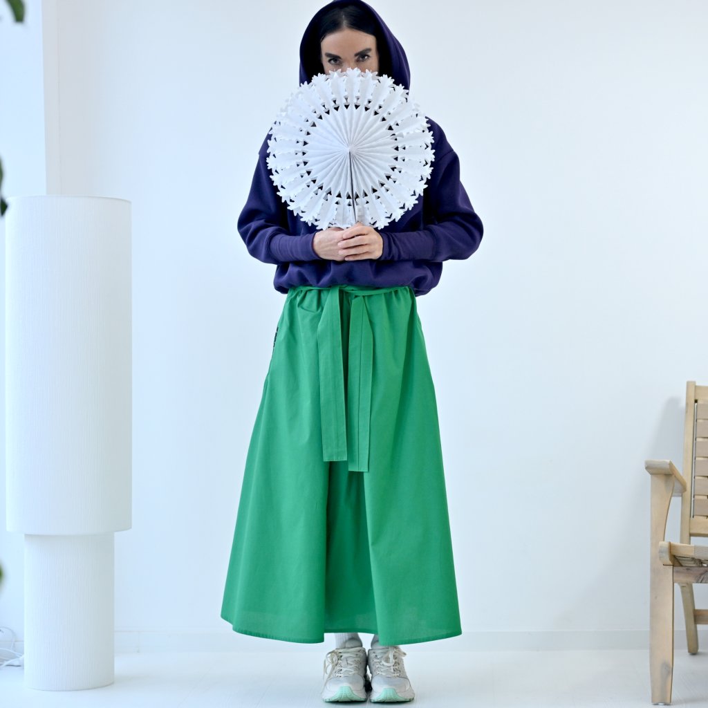 Sukně GRANADIA maxi sukně s jemnými skaldy v předím i zadním dílě, v pase všitá vazačka, kterou můžete upravit pas, zavázat na mašli nebo jen tak nechat volně. Sukně je z pevnějšího bavlněného plátna.