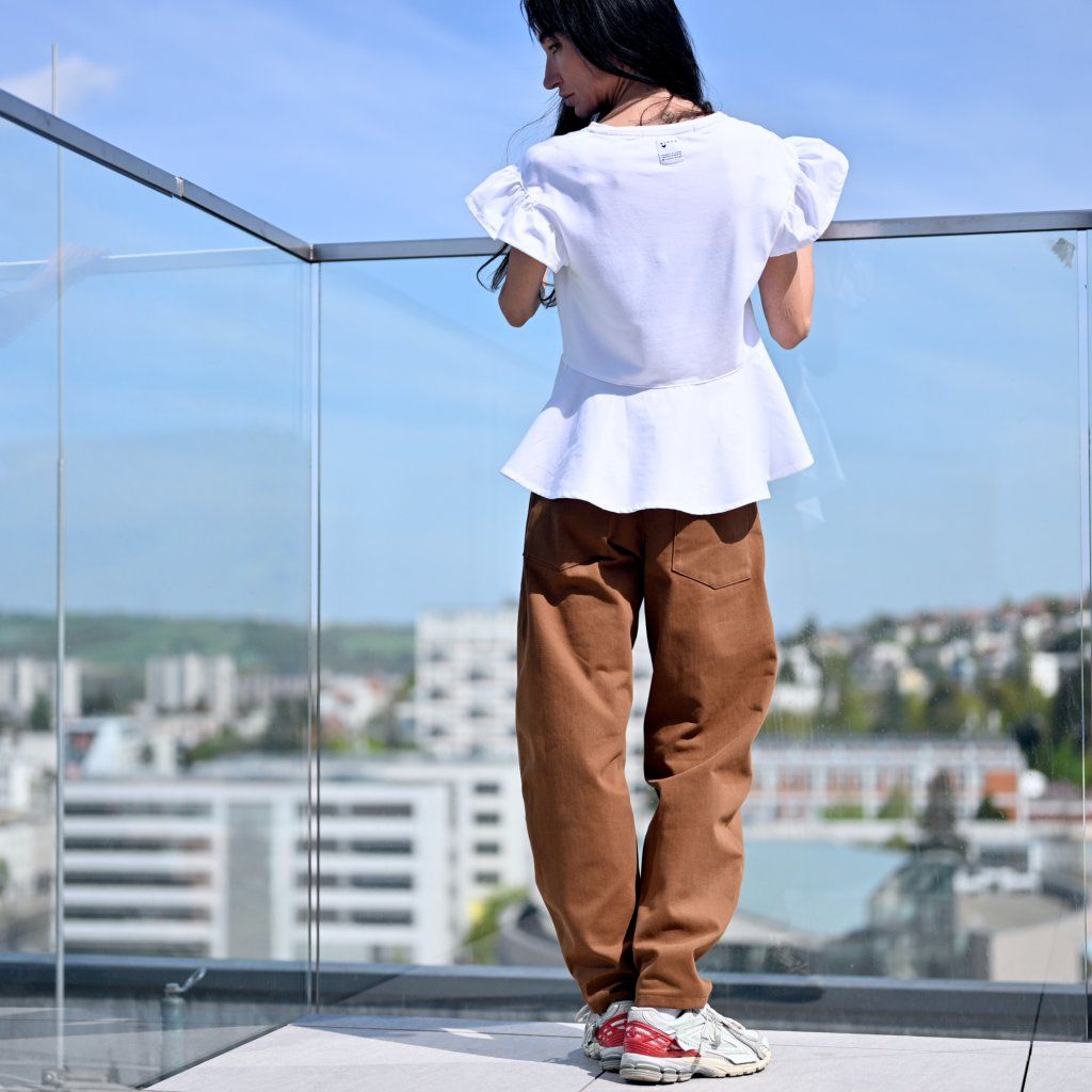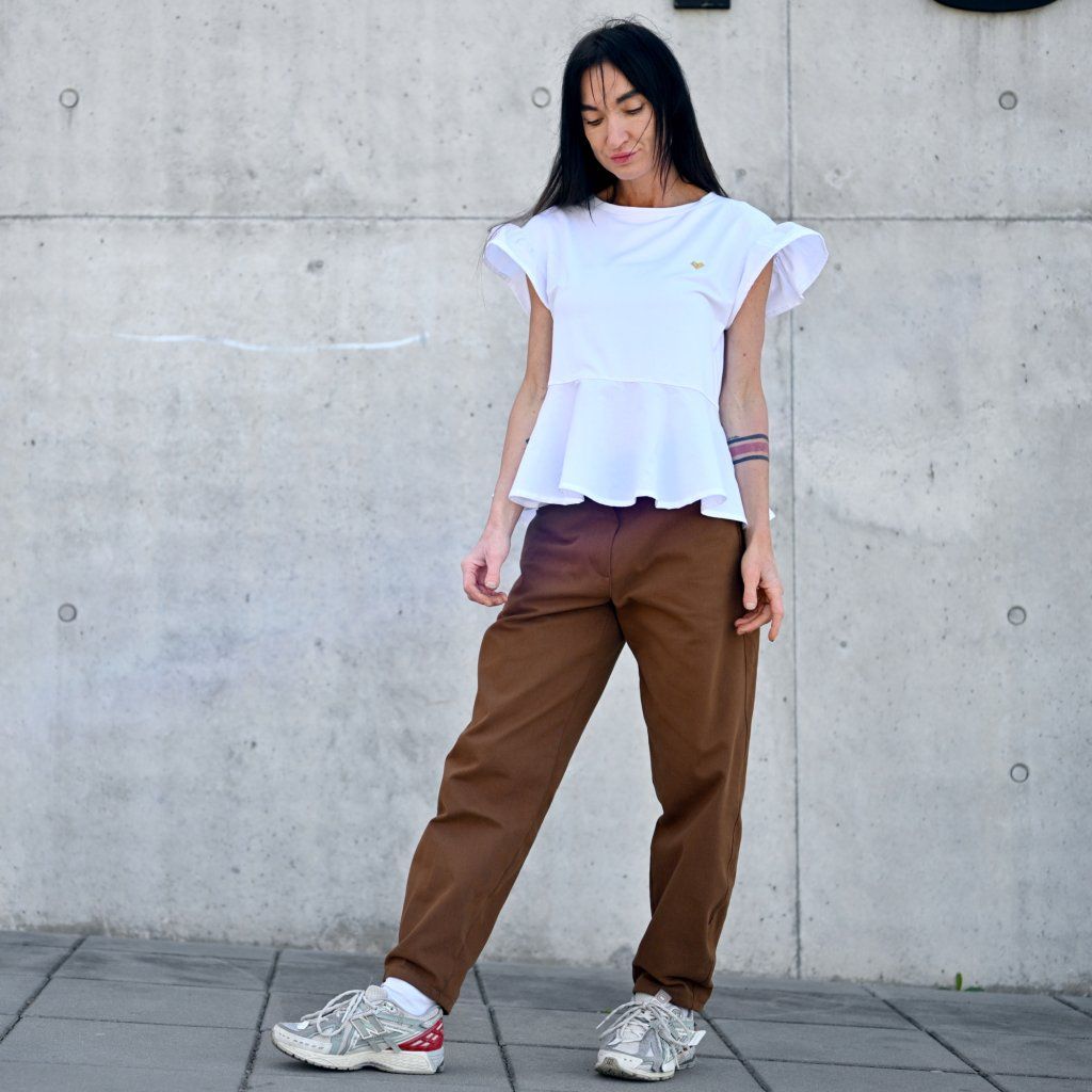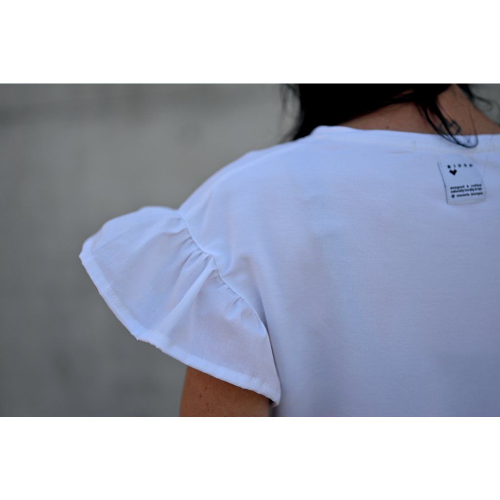 Triko VOLAR rozevláté, roztomilé, čisté.. Tohle triko dívčí rozevlátý střih, volánek ve spodní části volánek i na rukávu. Doplněno o naše ikonické logo srdce ve zlaté barvě. Samozřejmostí je ro nás ten nejlepší materiál. Bambus je za mě top nekrčí se i po vyprání je v pěkné kvalitě, příjemný na tělě.