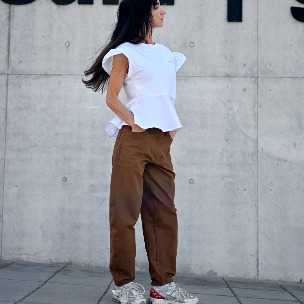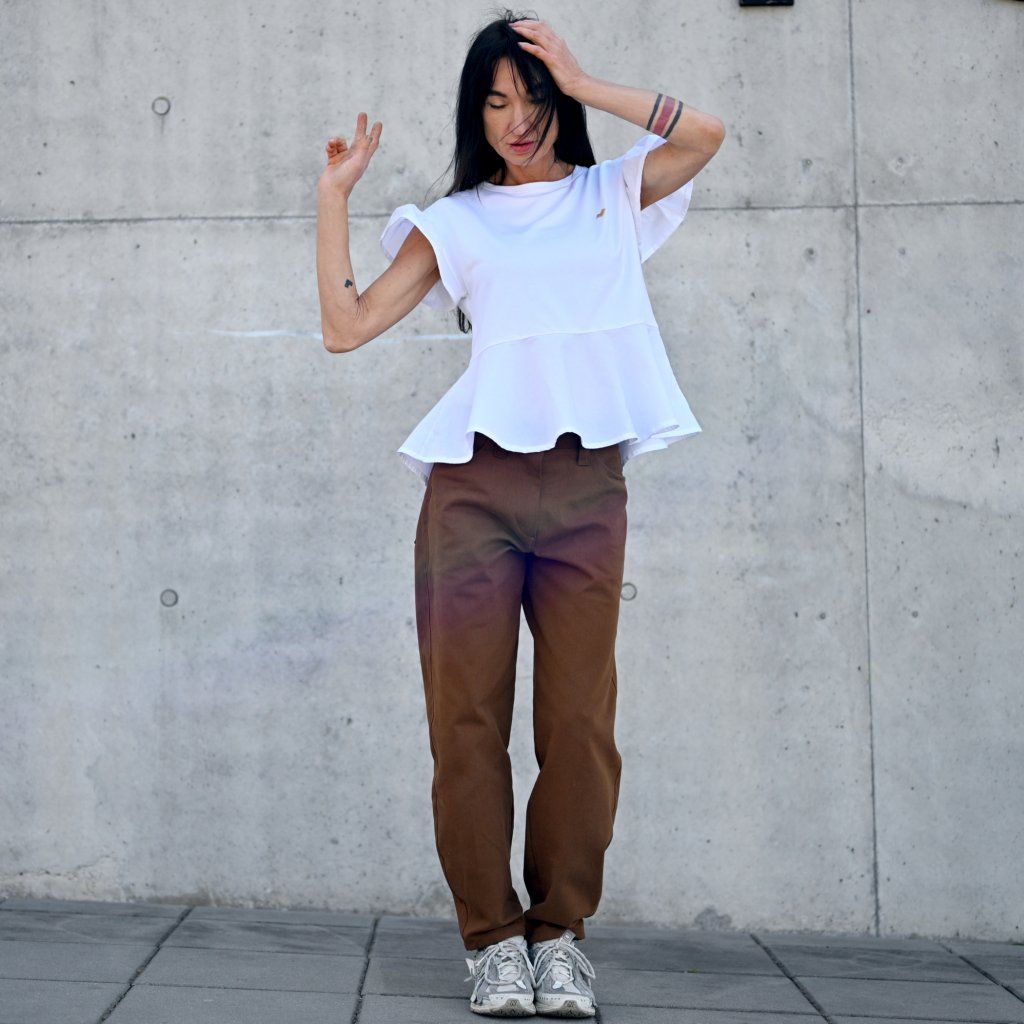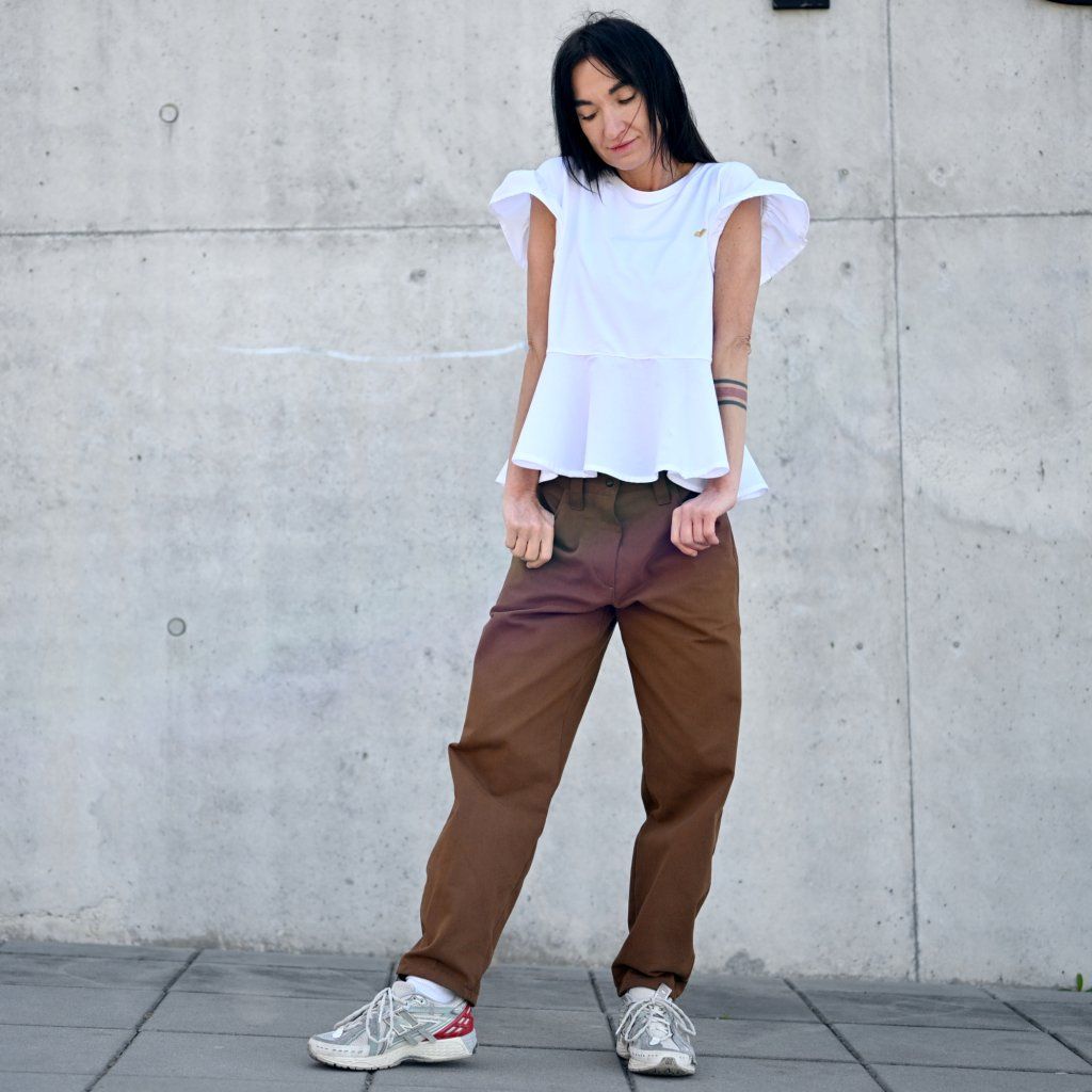 Triko VOLAR rozevláté, roztomilé, čisté.. Tohle triko dívčí rozevlátý střih, volánek ve spodní části volánek i na rukávu. Doplněno o naše ikonické logo srdce ve zlaté barvě. Samozřejmostí je ro nás ten nejlepší materiál. Bambus je za mě top nekrčí se i po vyprání je v pěkné kvalitě, příjemný na tělě.