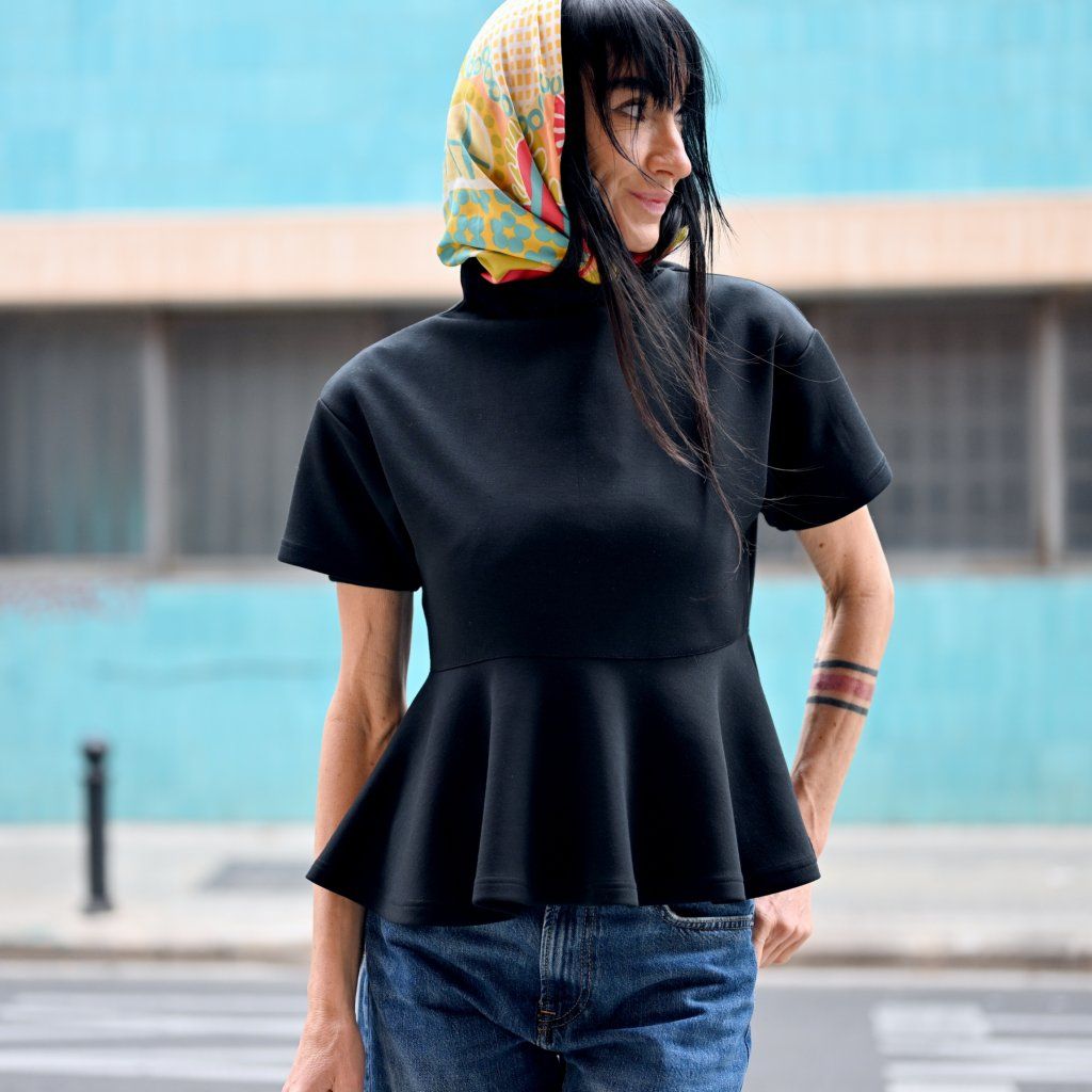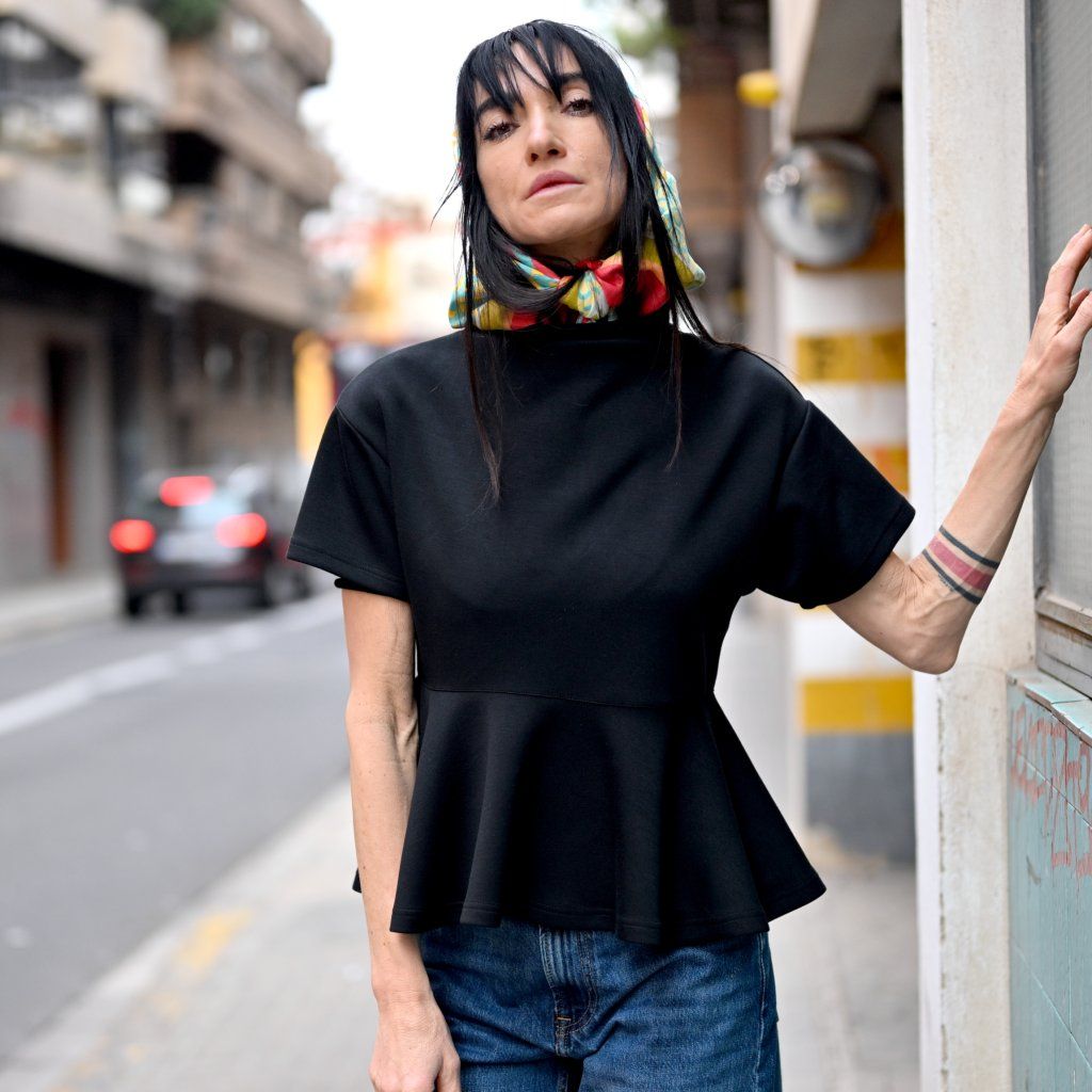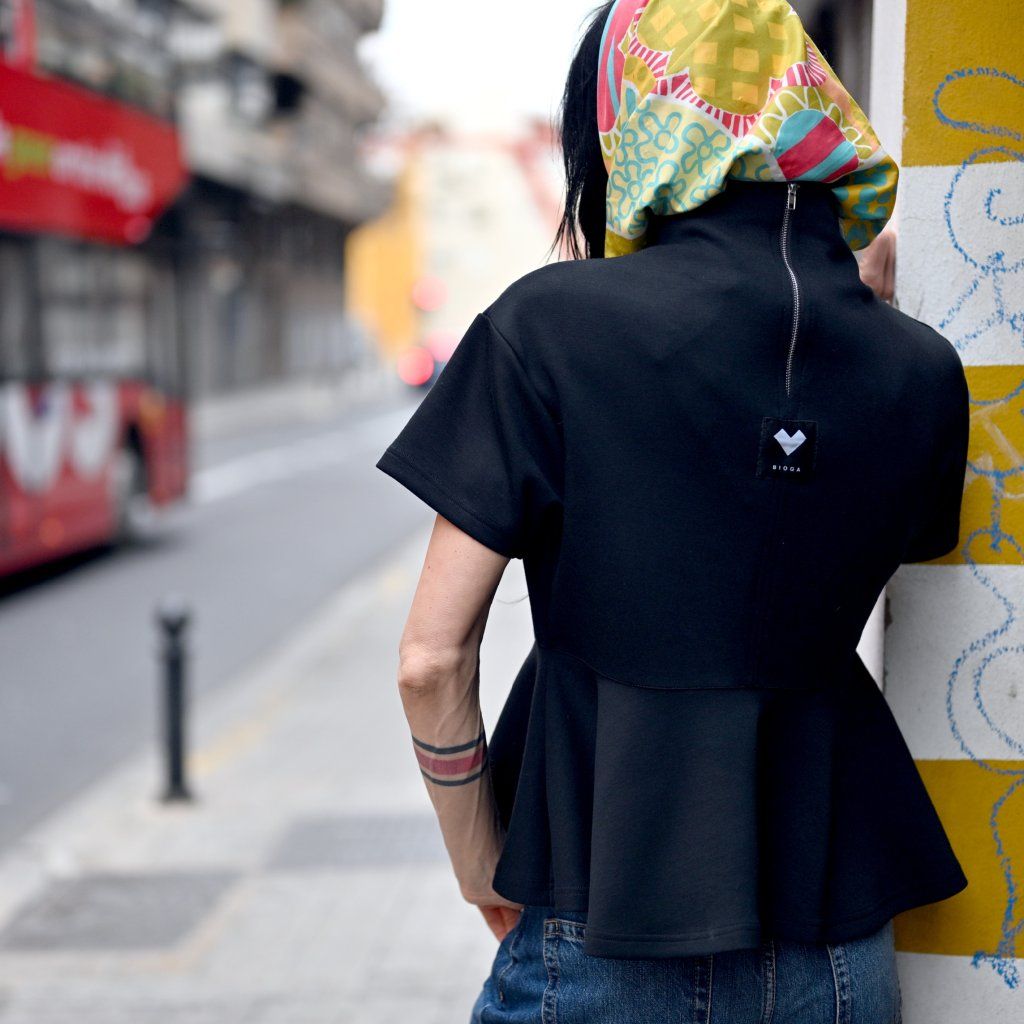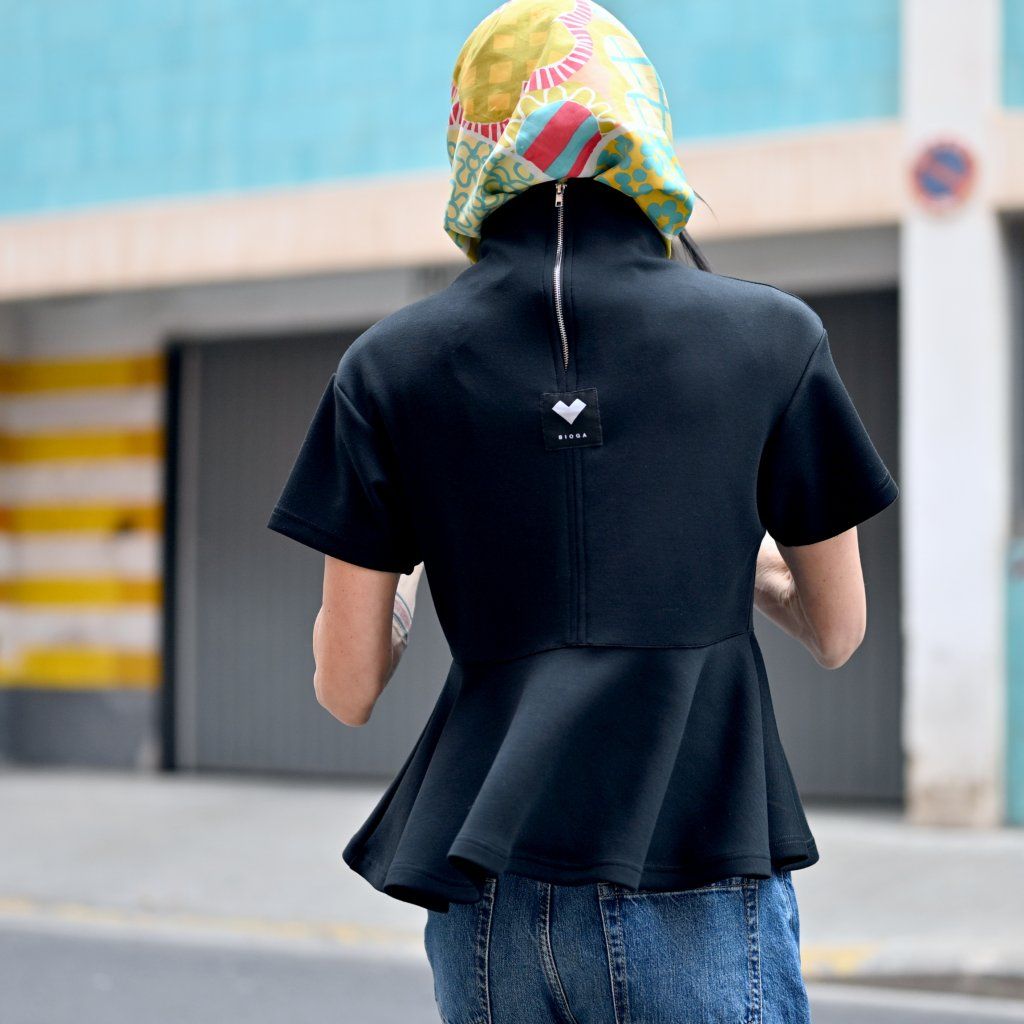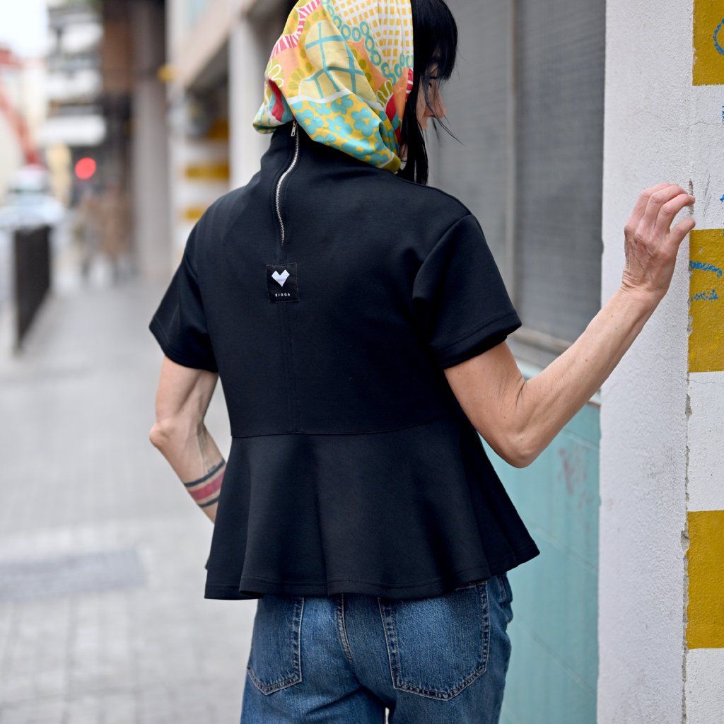 Top RINCON s volánem ve spodní části, zadní dílna zip s krátkým rukávem = čistá láska, cute roztomilý look, ale i zárověň sofistikovaný Top je ze slušného viskozového materiálu, působí elegantně trendy a pohodlně.