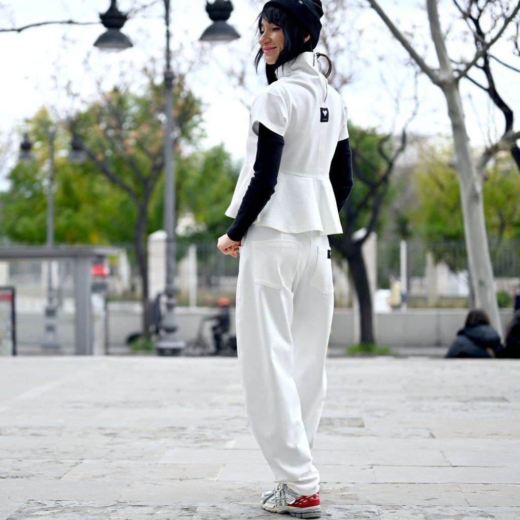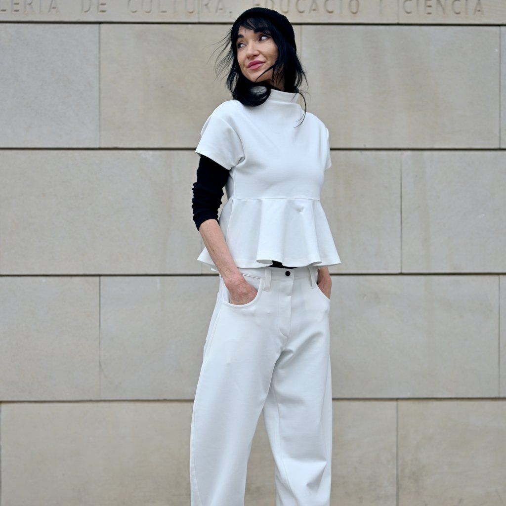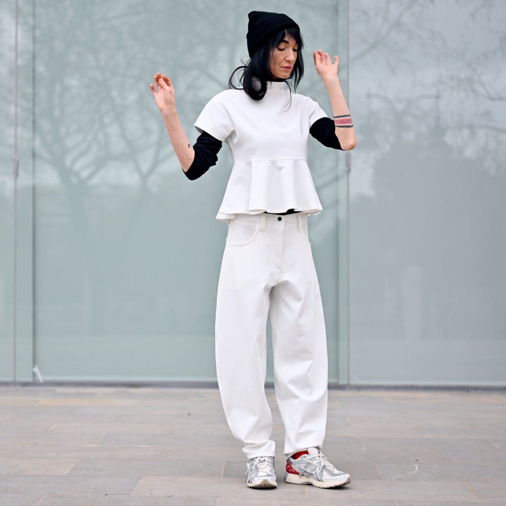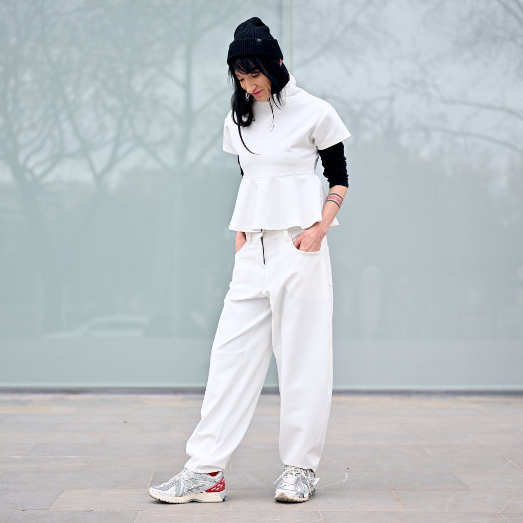 Materiál je stejně přesvědčivý jako její vzhled – příjemná broušená bavlna vyšší gramáže s příměsí elastanu zajišťuje komfort, strukturu, dokonalé držení tvaru a pocit jistoty při nošení..