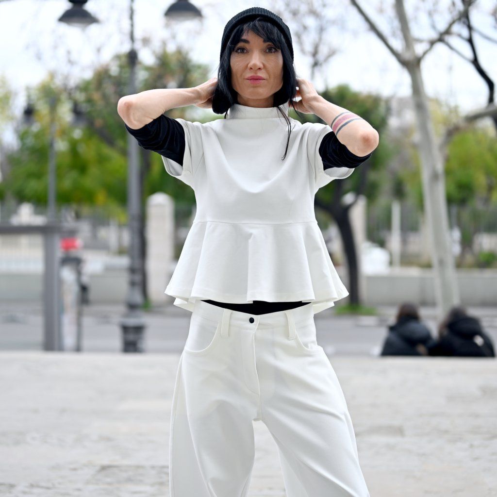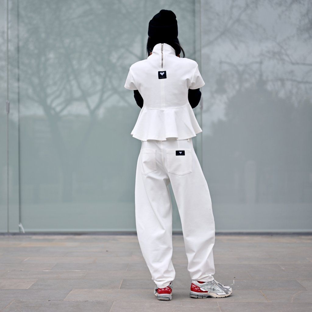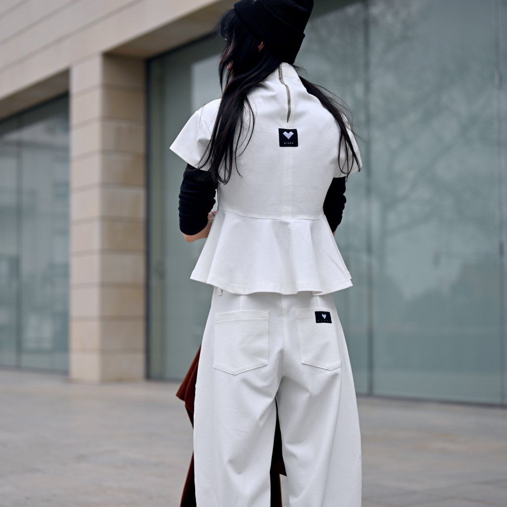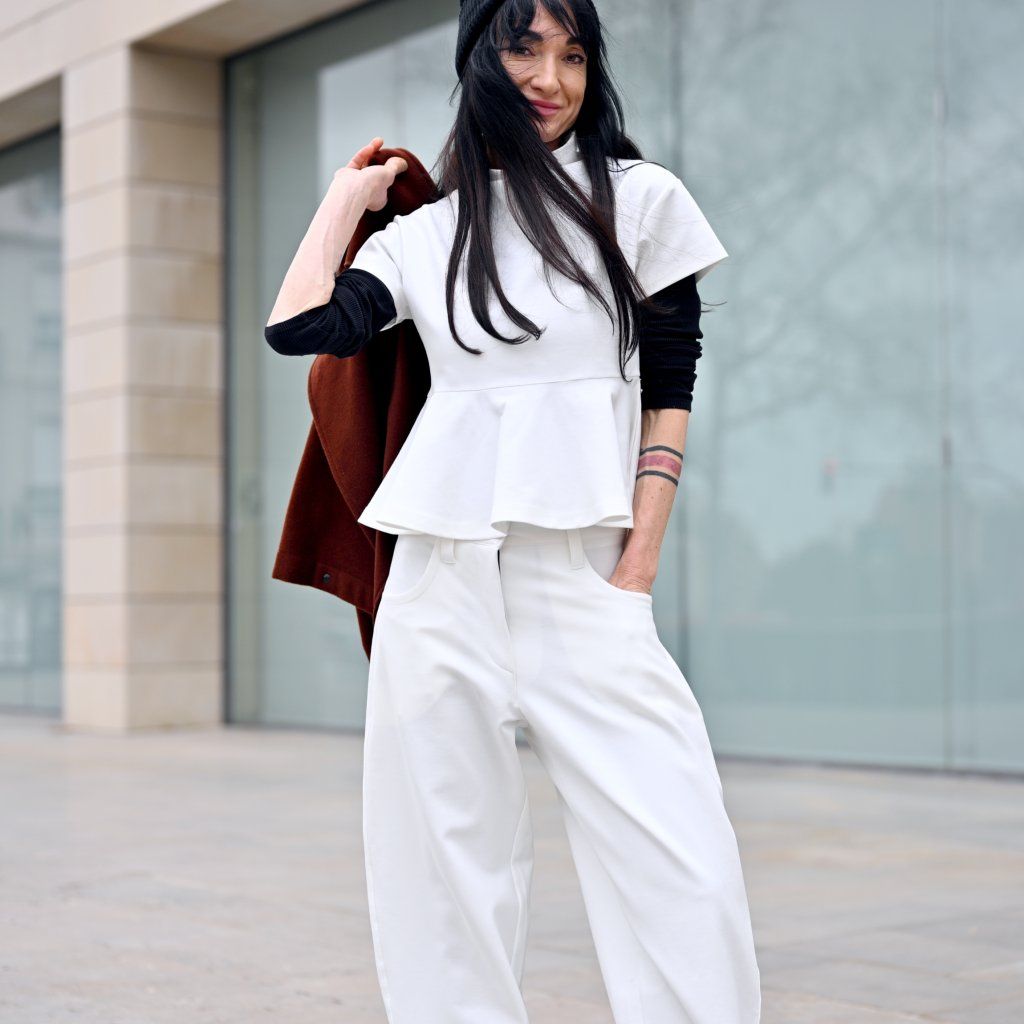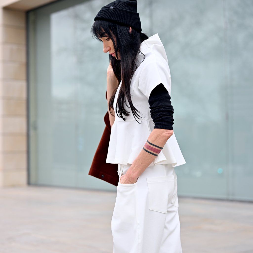 Materiál je stejně přesvědčivý jako její vzhled – příjemná broušená bavlna vyšší gramáže s příměsí elastanu zajišťuje komfort, strukturu, dokonalé držení tvaru a pocit jistoty při nošení..
