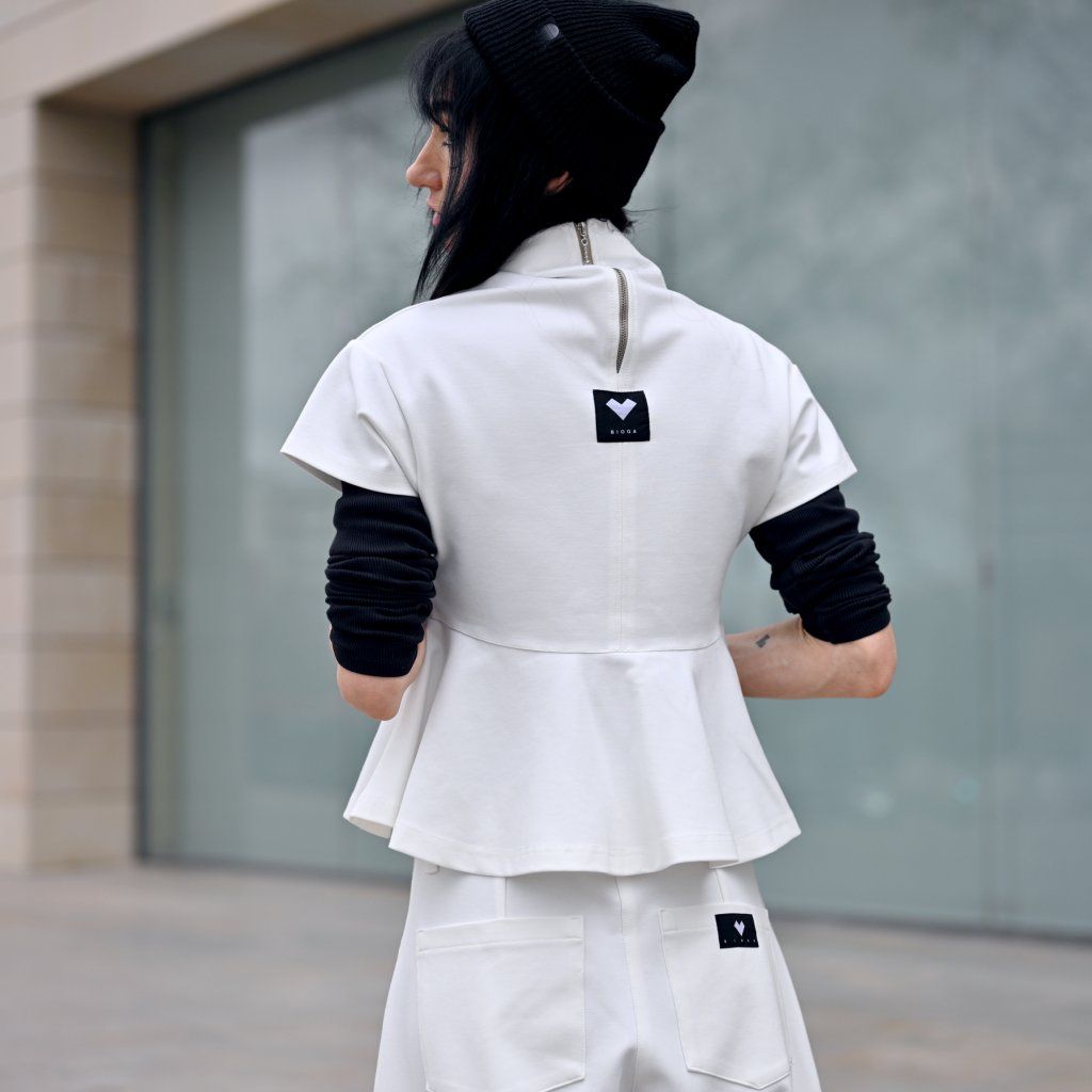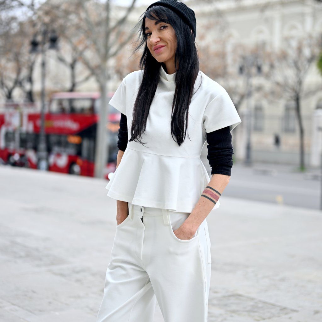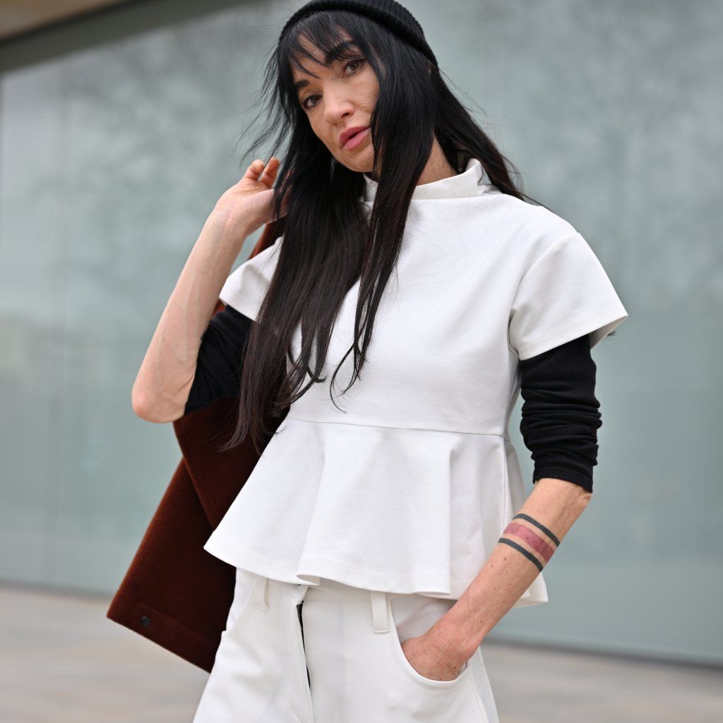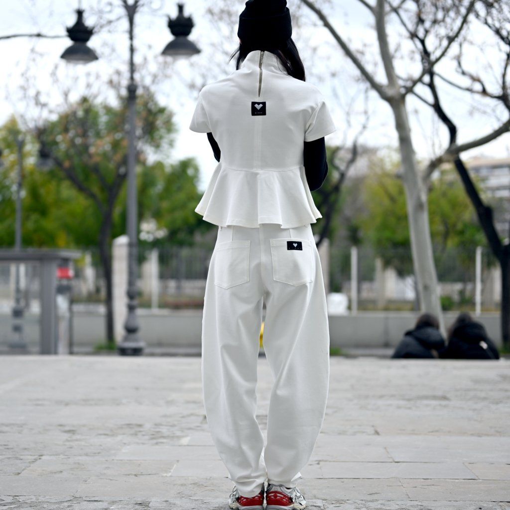 Materiál je stejně přesvědčivý jako její vzhled – příjemná broušená bavlna vyšší gramáže s příměsí elastanu zajišťuje komfort, strukturu, dokonalé držení tvaru a pocit jistoty při nošení..