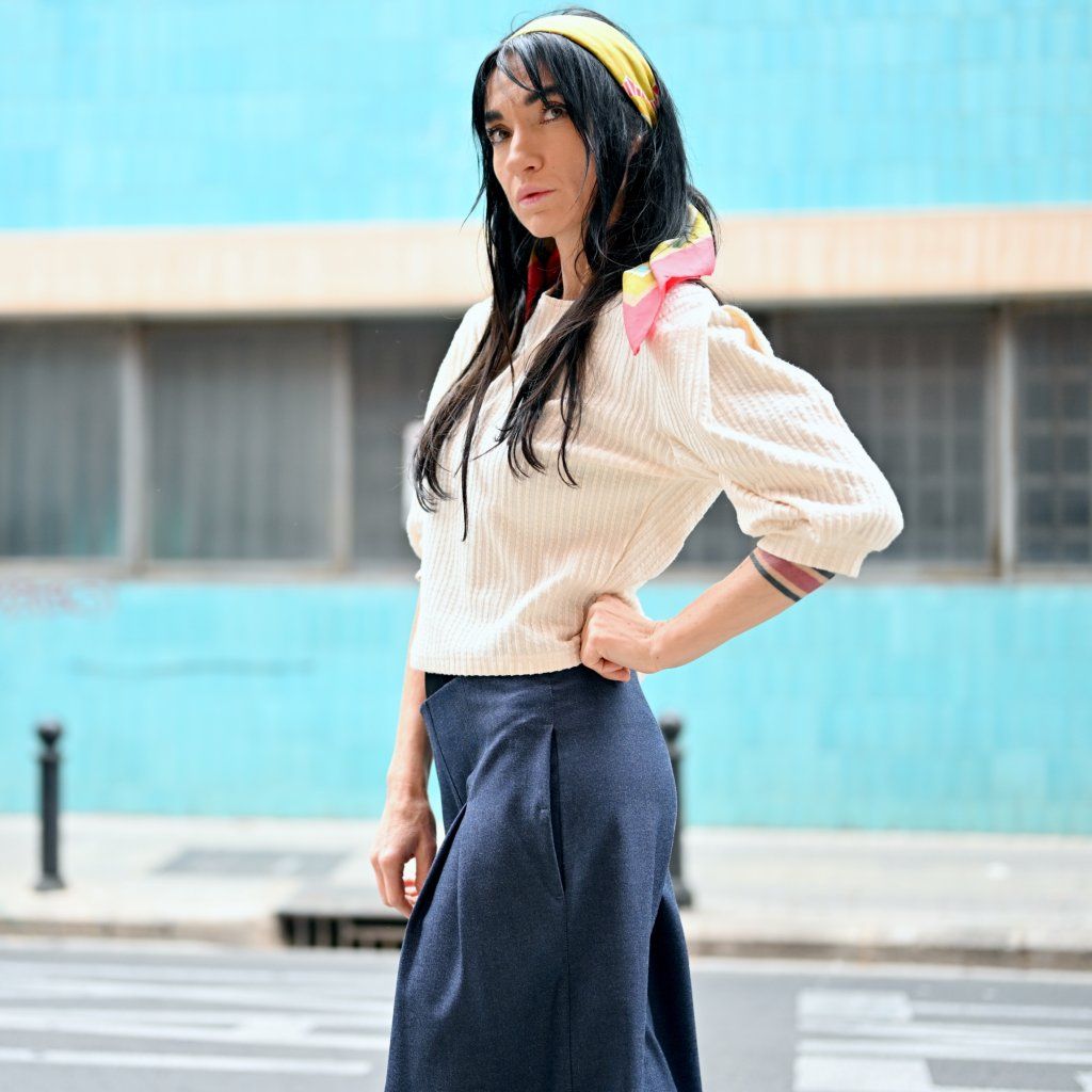 Materiál je stejně přesvědčivý jako její vzhled – příjemná broušená bavlna vyšší gramáže s příměsí elastanu zajišťuje komfort, strukturu, dokonalé držení tvaru a pocit jistoty při nošení..