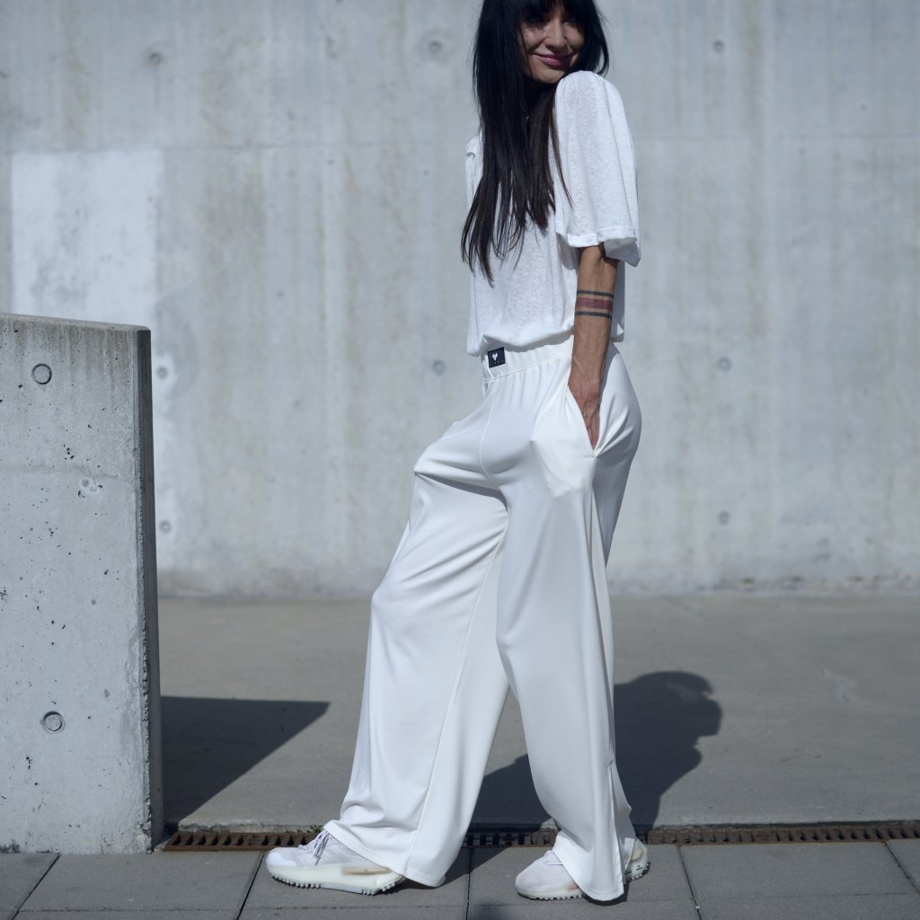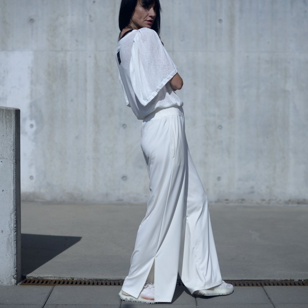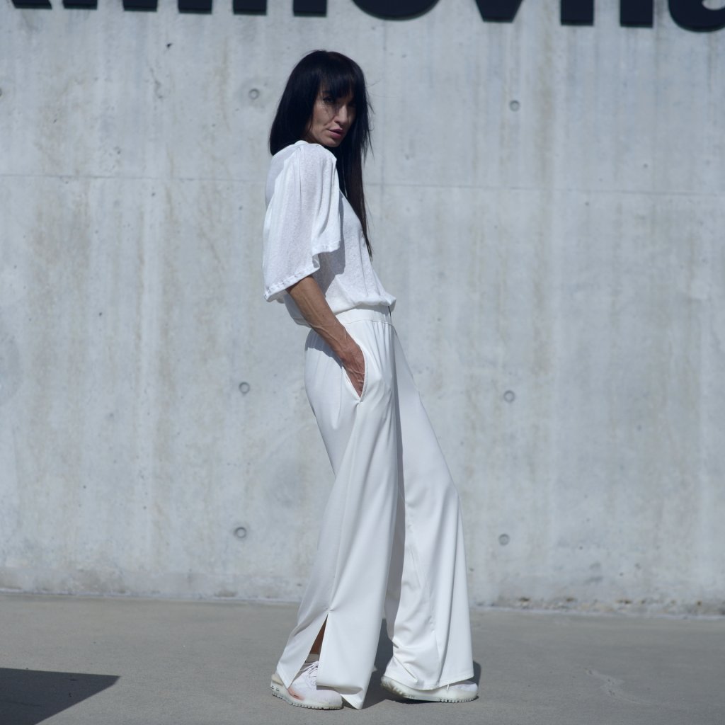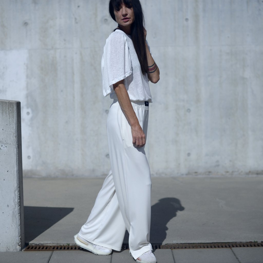 Top VOLVER s extra nadýchaným rukávem z lněného vizkozového lehkého úpletu. Pas lehce projmutý, prodloužená délka.
