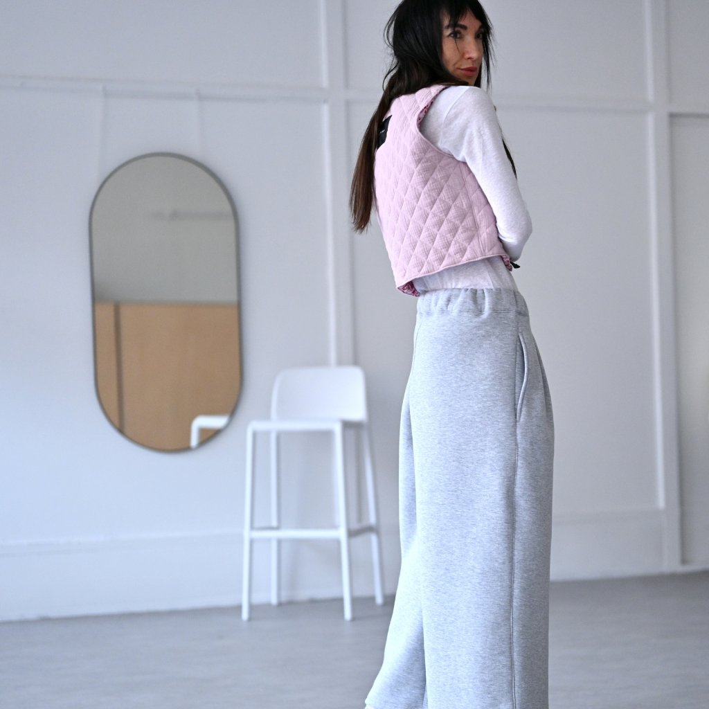 Vesta BJORK v prošívané zatepleném materiálu, spodní vrstva lehká bavlněná podšívka. Bjork jsme vylepšili: prodloužili délku a víc zaoblený tvar předního dílu. Zavazování na bavlněnou šnůrku.