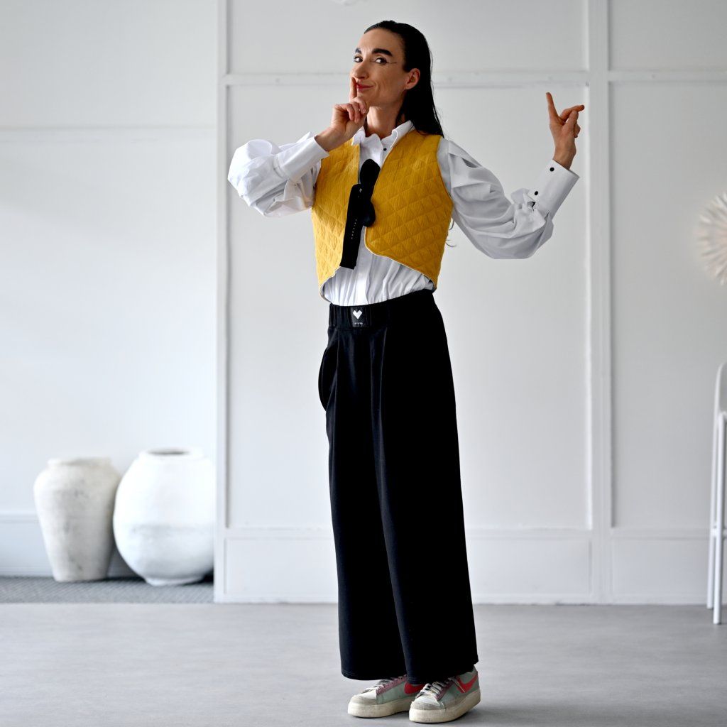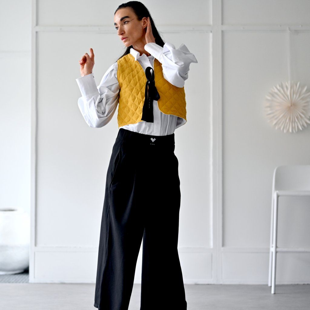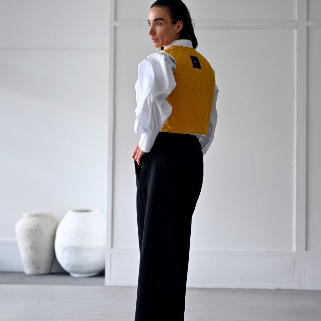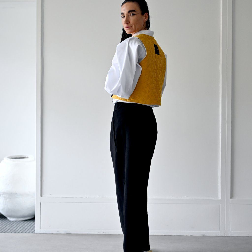 Vestu jsme skombinovali s košilí Emily a kalhoty Portero. Miluji minimalismus a tohle kombo je dle mého gusta , barvy krásně ladí a střih je neuvěřitelně pohodlný a design nadčasový. Vestu máme limItovanou jen 4 ks velikost SM.