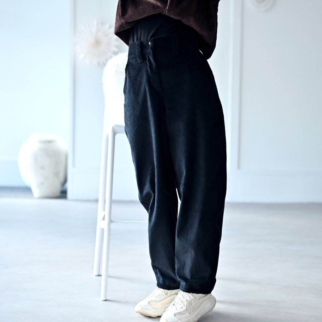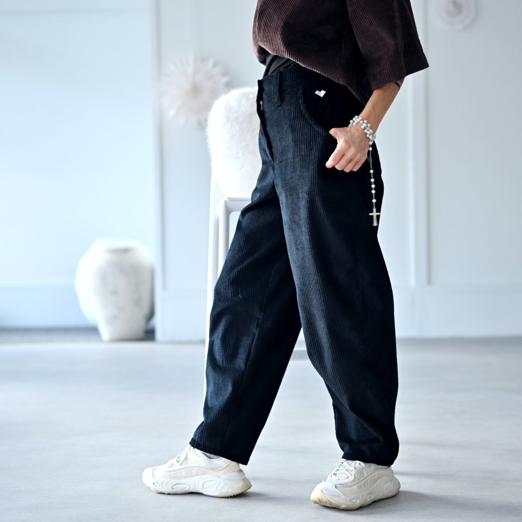 Kalhoty KOMODO "pohodlí a styl v jednom" barelové volnější kalhoty z MANŽESTROVÉ tkaniny s kapsami, pas je zřasen do pružné gumy, kalhoty jsou na zip + patentka. široké nohavice zúžené ve spodní části, všitý pruh dodává originální baggy look lichotící většině typům postav.