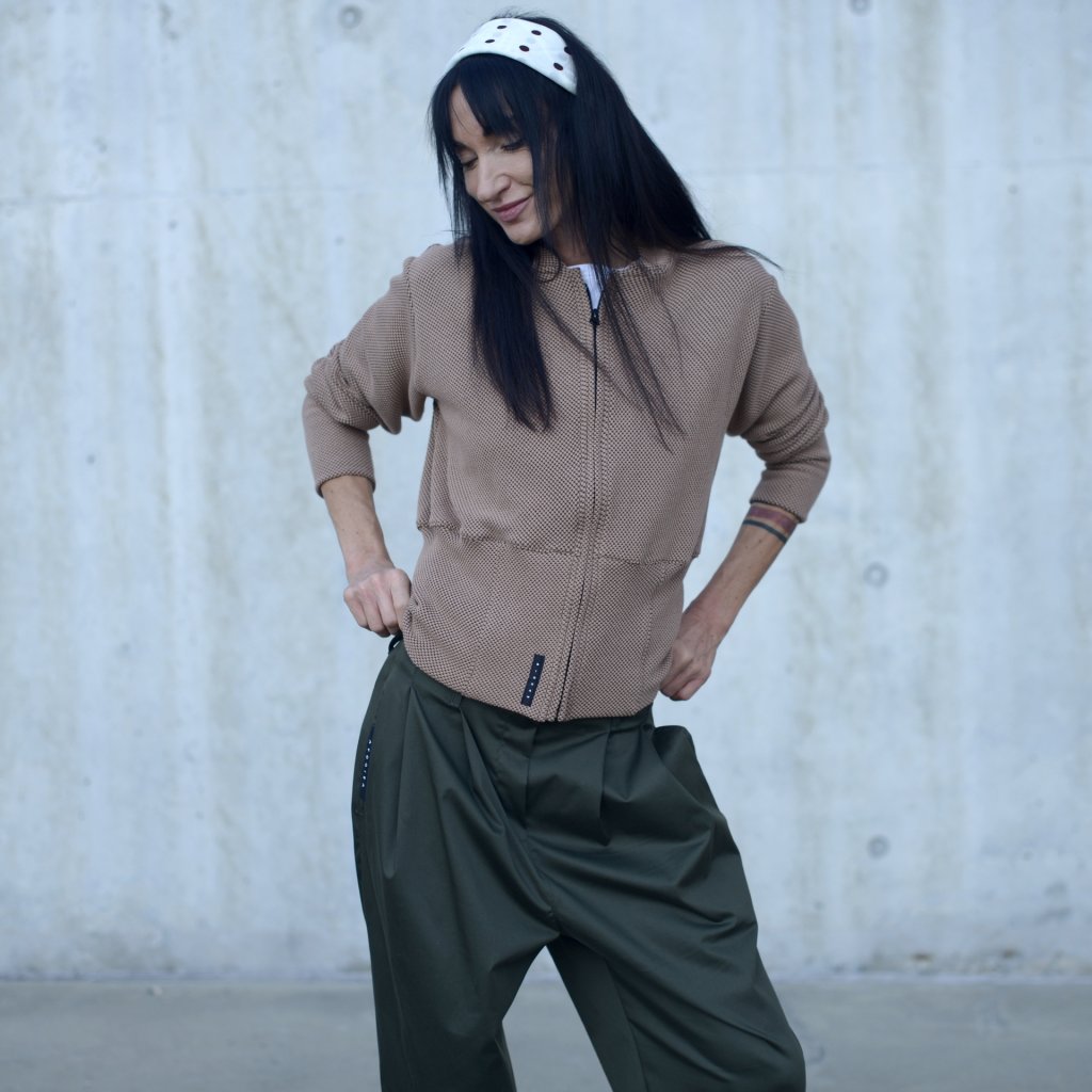 S bombery jsme neskončili, jedeme dál jen v novém provedení. Tentokrát jsme bomber vypasovali dlouhým žebrovým úpletem, díky tomu bude i plnoštíhlá postava krásně vytvarovaná. Zapínání bude velkou změnou, tentokrát na zip. Vymysleli jsme variantu skrytého zipu, která neruší a zachová si minimalistický look.