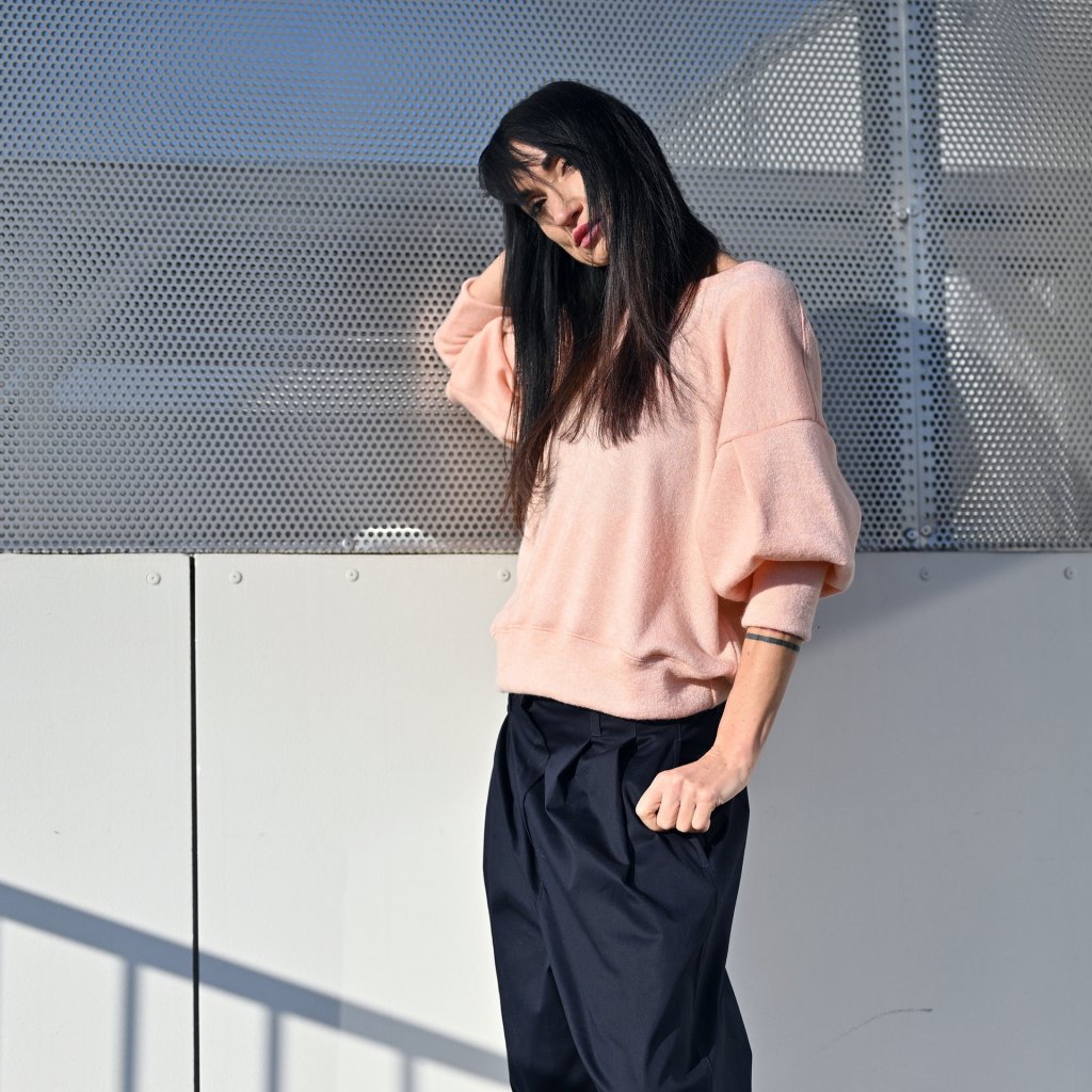 Mikina ARLO z velmi kvalitní svetroviny v crémové barvě. Kratší délka do pasu, rukávy jsou spadené s naskládanými rukávy, dlouhé manžety.