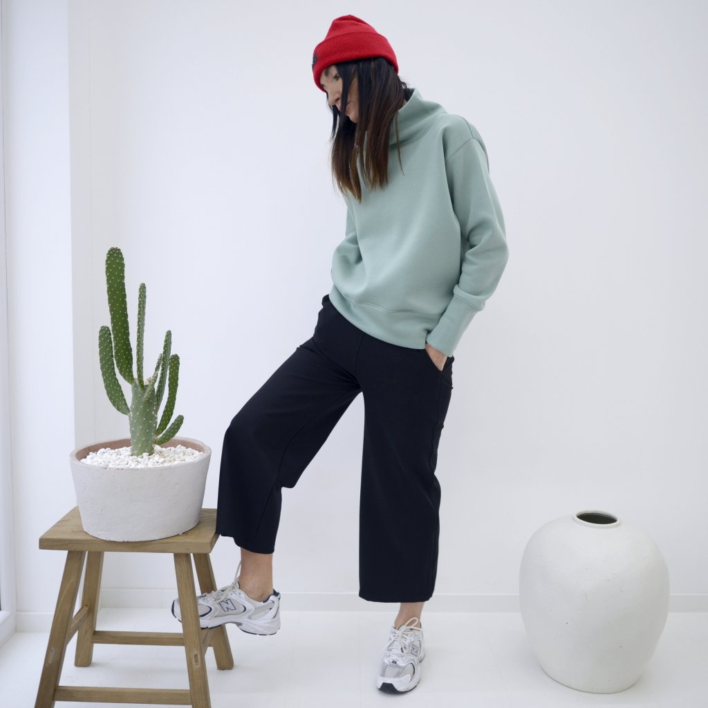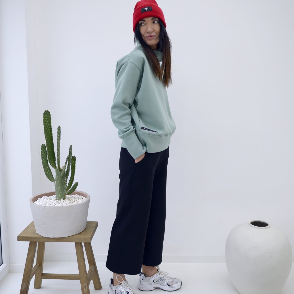 Mikina bude dobře vypadat ke kratším bootcut jeansům, nebo šitokým 3/4 culottes, širokým jeansům. Doladit to můžete čepicí z naší nové kolekce.