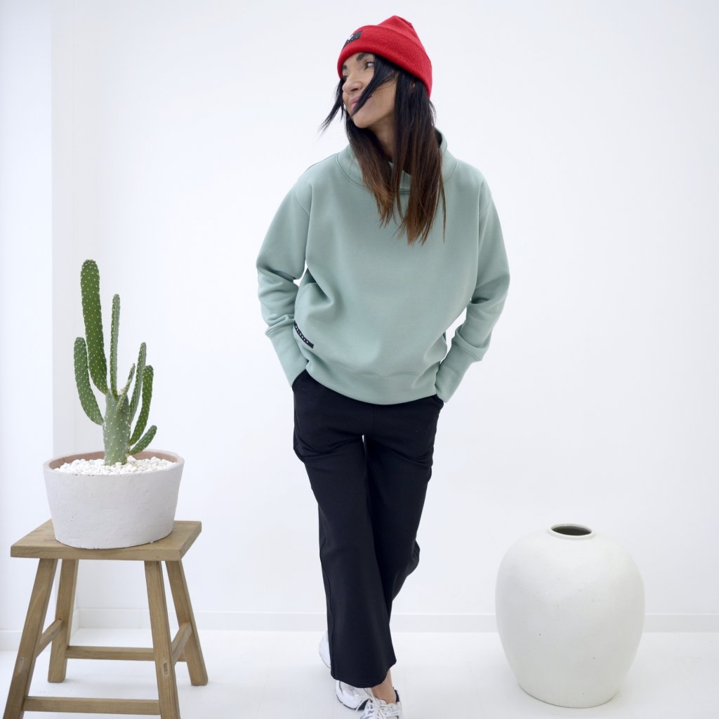 Mikina Fluffy měkoučká teplá mikina s počesaného materiálu, s rolákem , vysoké manžety na rukávech, pas zakončen do lemu. Na zádech minimalistické logo BIOGA.