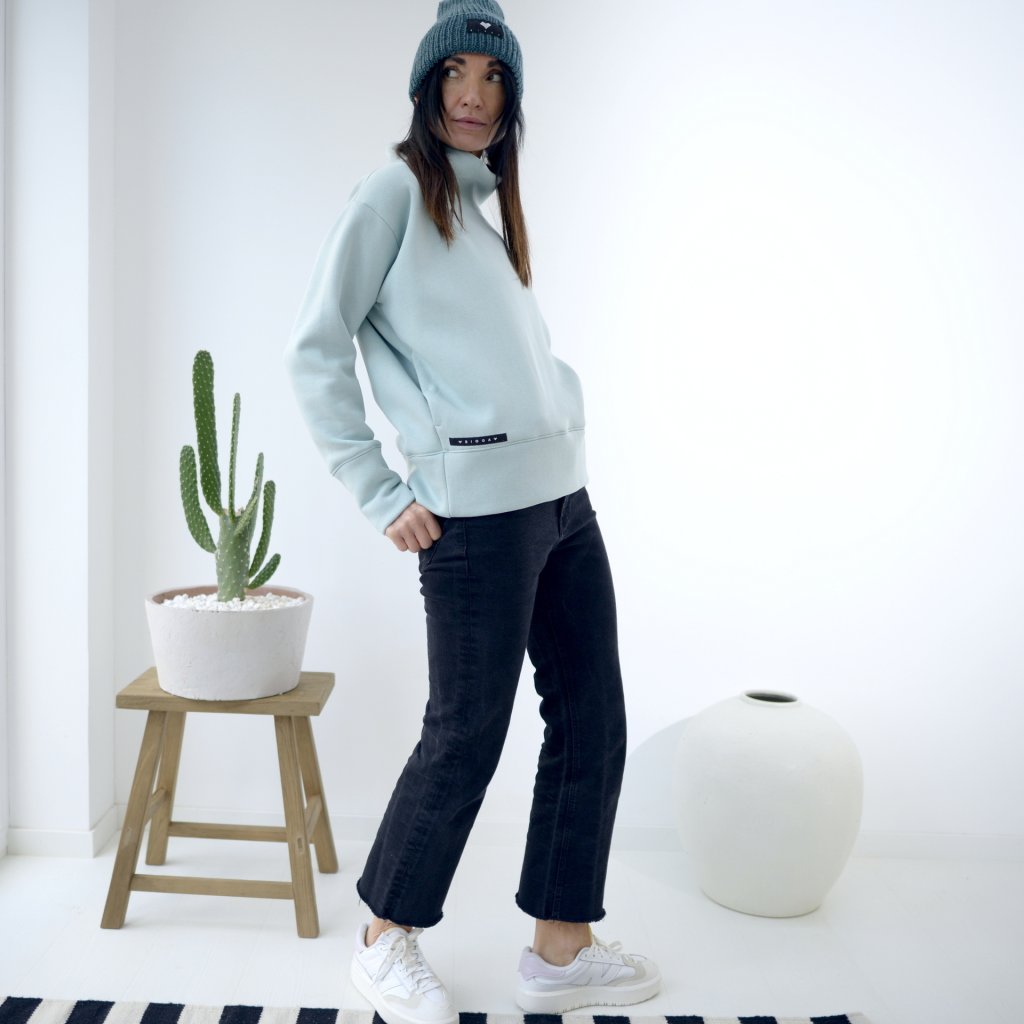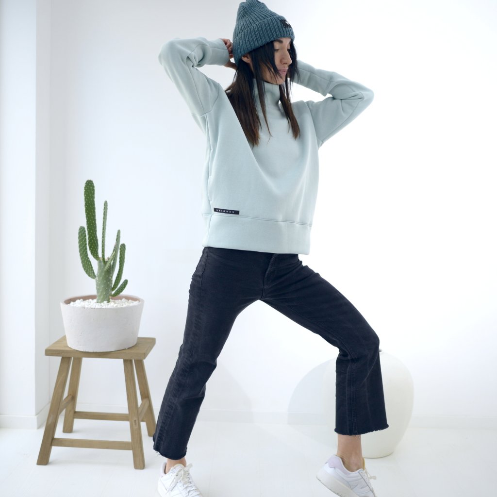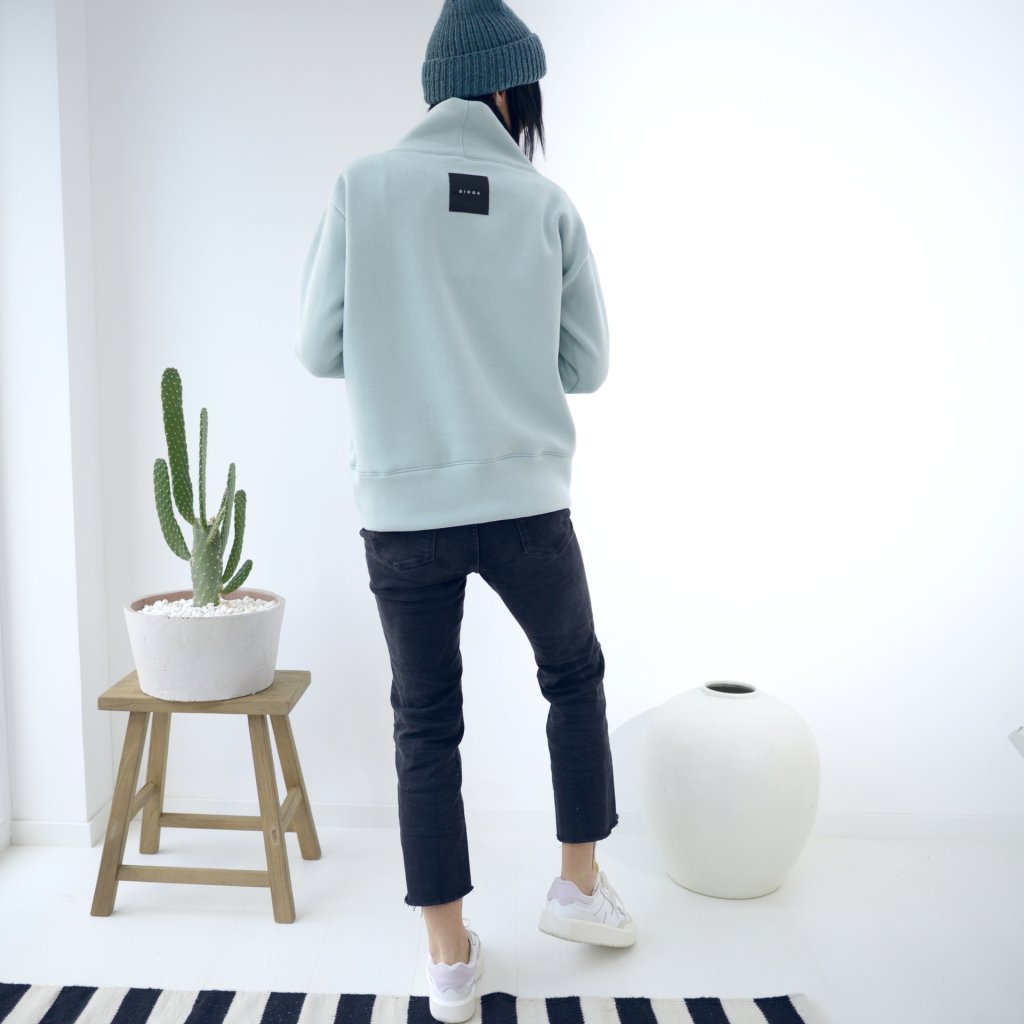 Mikina Fluffy měkoučká teplá mikina s počesaného materiálu, s rolákem , vysoké manžety na rukávech, pas zakončen do lemu. Na zádech minimalistické logo BIOGA.