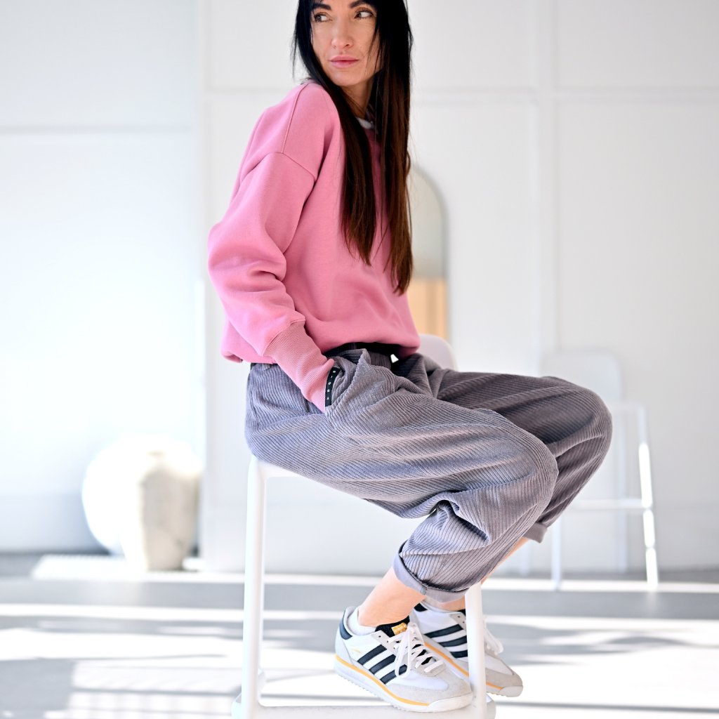 Mikina GREISY oversize mikina, dlouhé manžety na rukávech + spodní lem z bavlněného žebra v barvě materiálu, průkrčník s jemným pružným lemem.