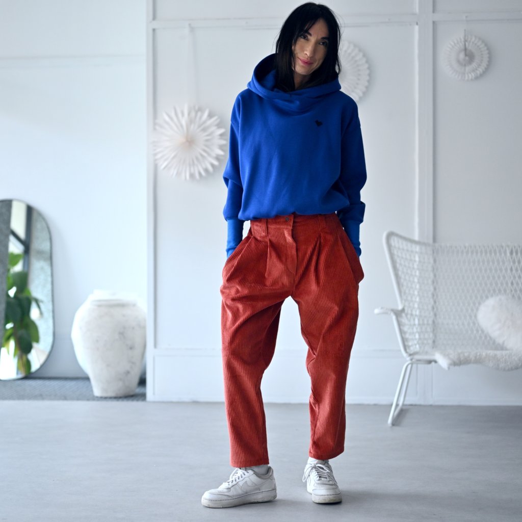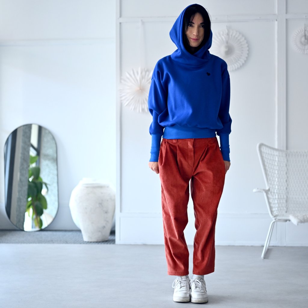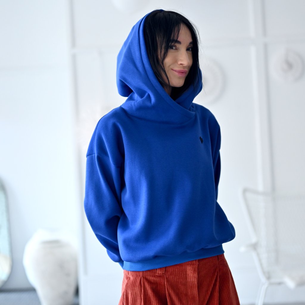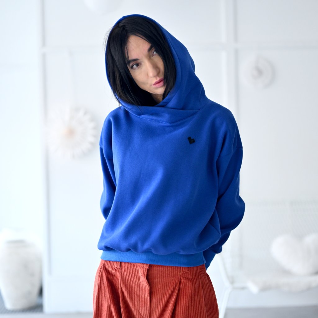 Mikina LOSIENTO s velkou kapucí, dlouhé žebrované úplety na rukávech a spodní části mikiny. Mikina bez kapes.