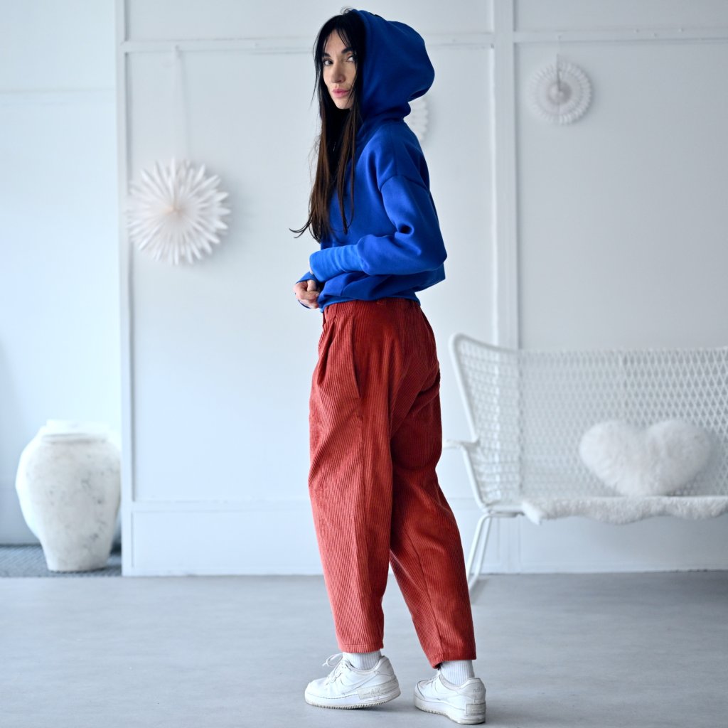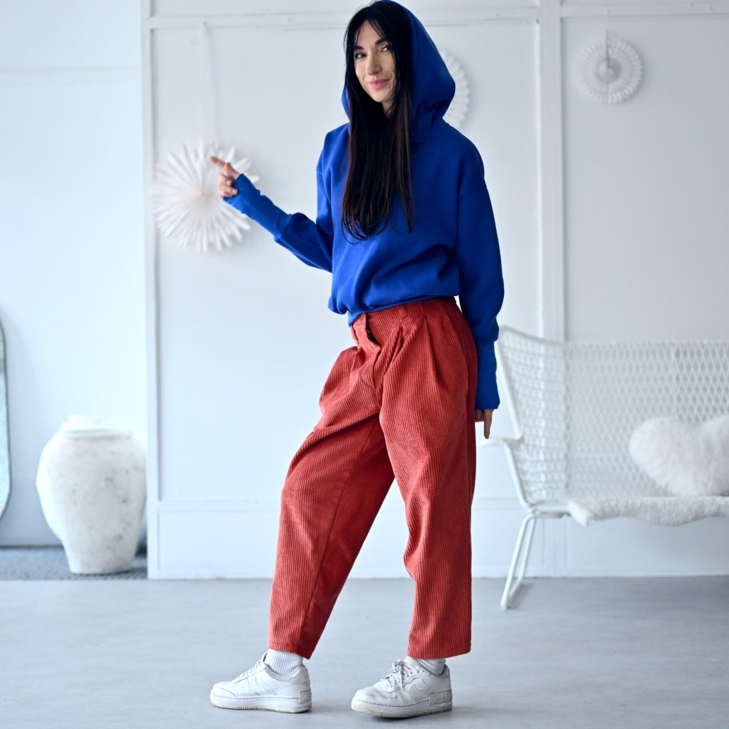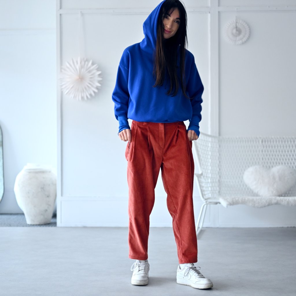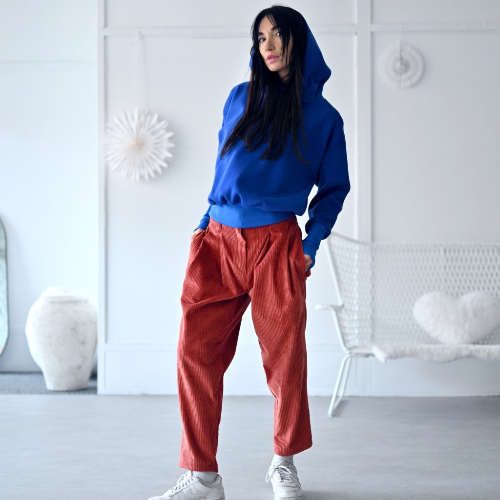 Mikina LOSIENTO s velkou kapucí, dlouhé žebrované úplety na rukávech a spodní části mikiny. Mikina bez kapes.