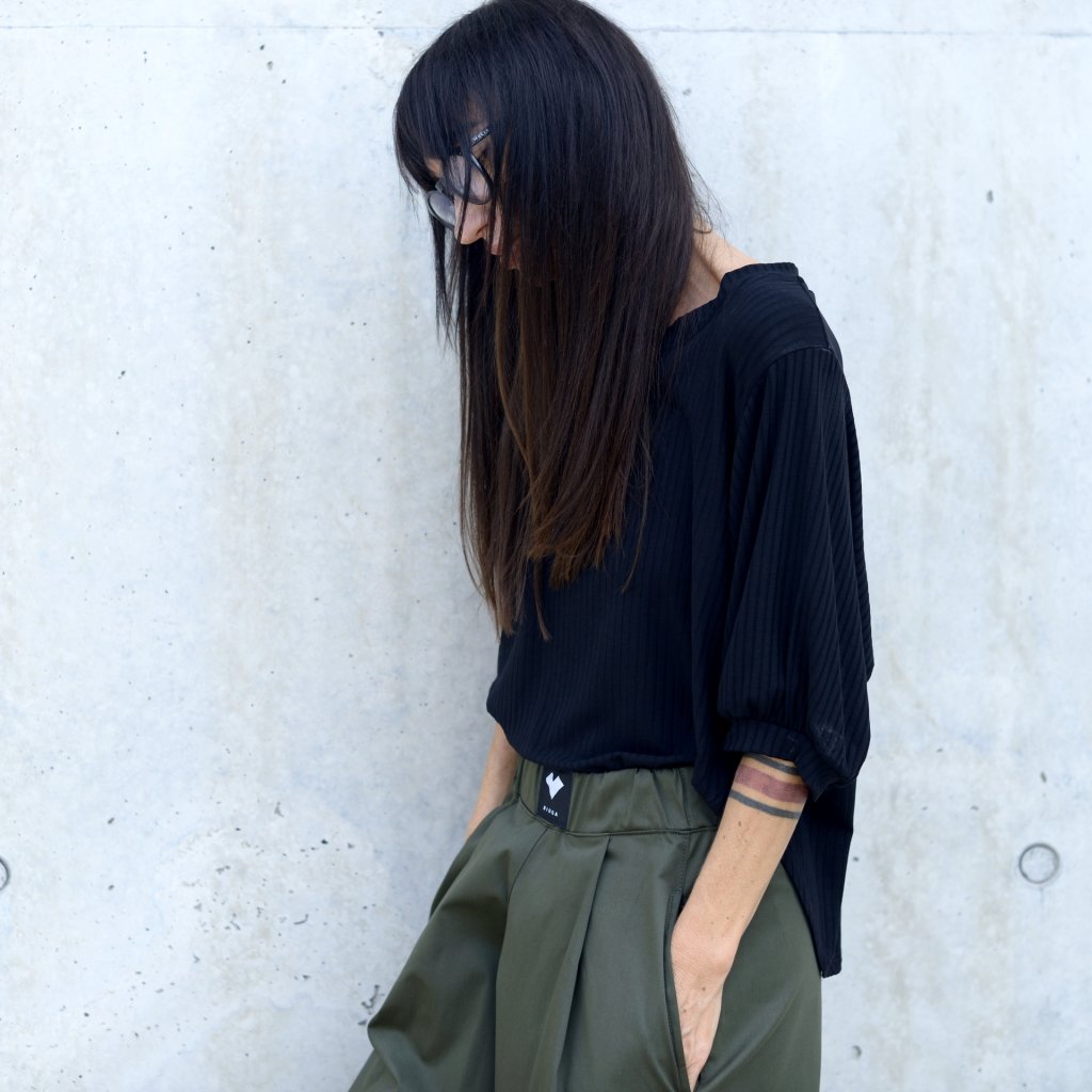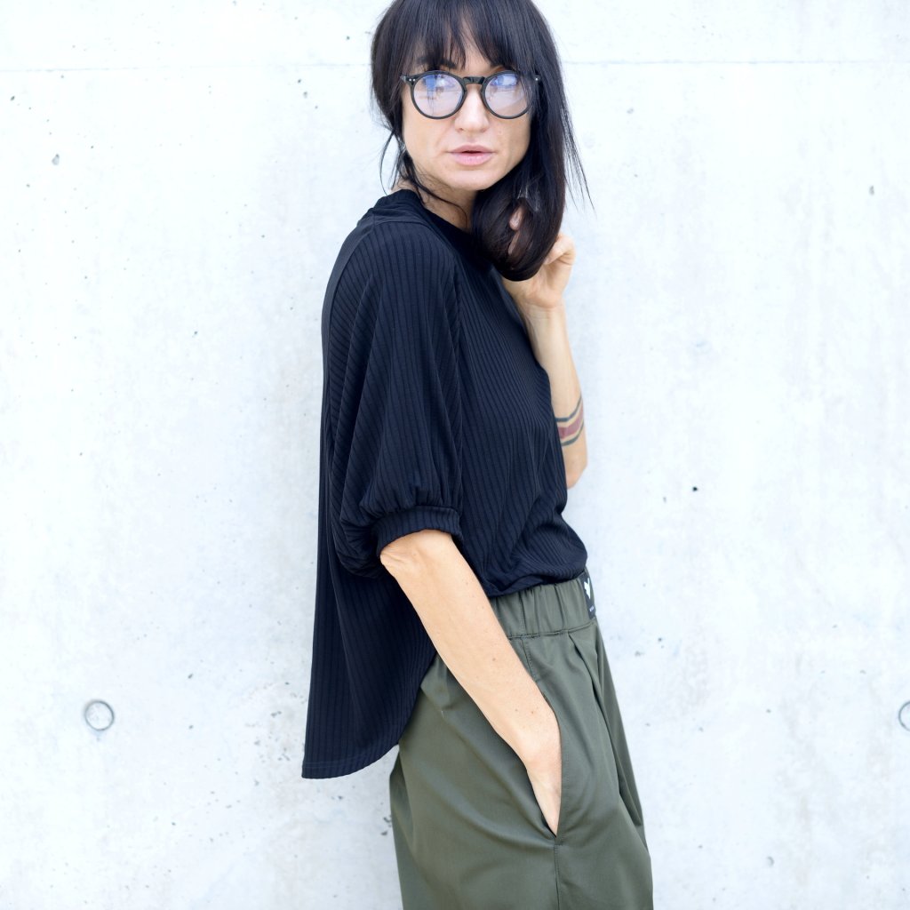 Triko ABRAZZO hlavní doménou asymetrický střih, díky kterému vyniká originální design. Balonový rukáv zakončen manžetou, na bocích výkrojena do oblouku, průkrčník kulatý výstřih. Materiál bavlněný žebrovaný úplet.