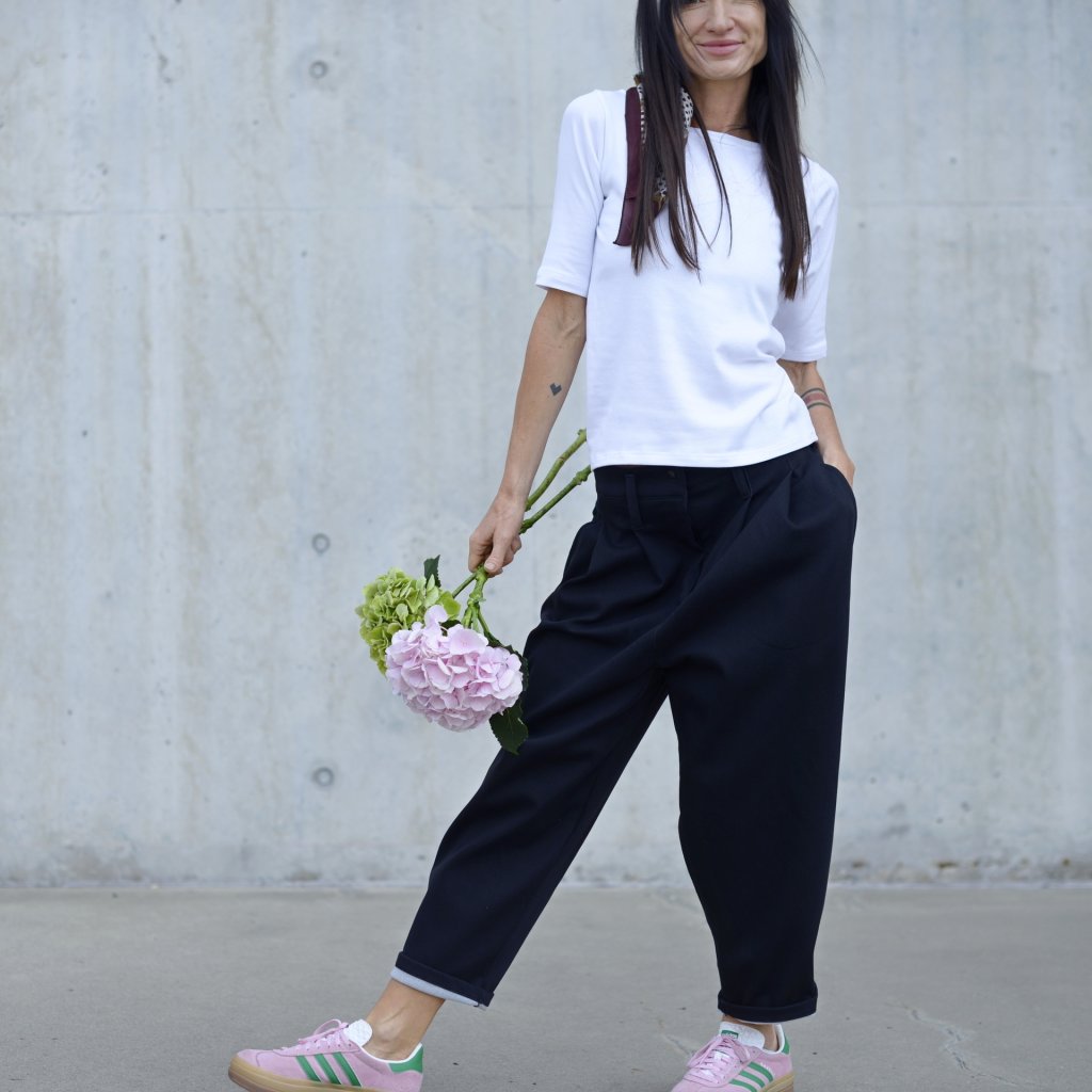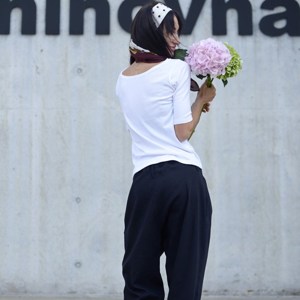 Triko Caríňa - basic triko s větším lodičkovým průkrčníkem, vzadním díle, s rukávem po loket. Materiál jsme použili jemny modal.