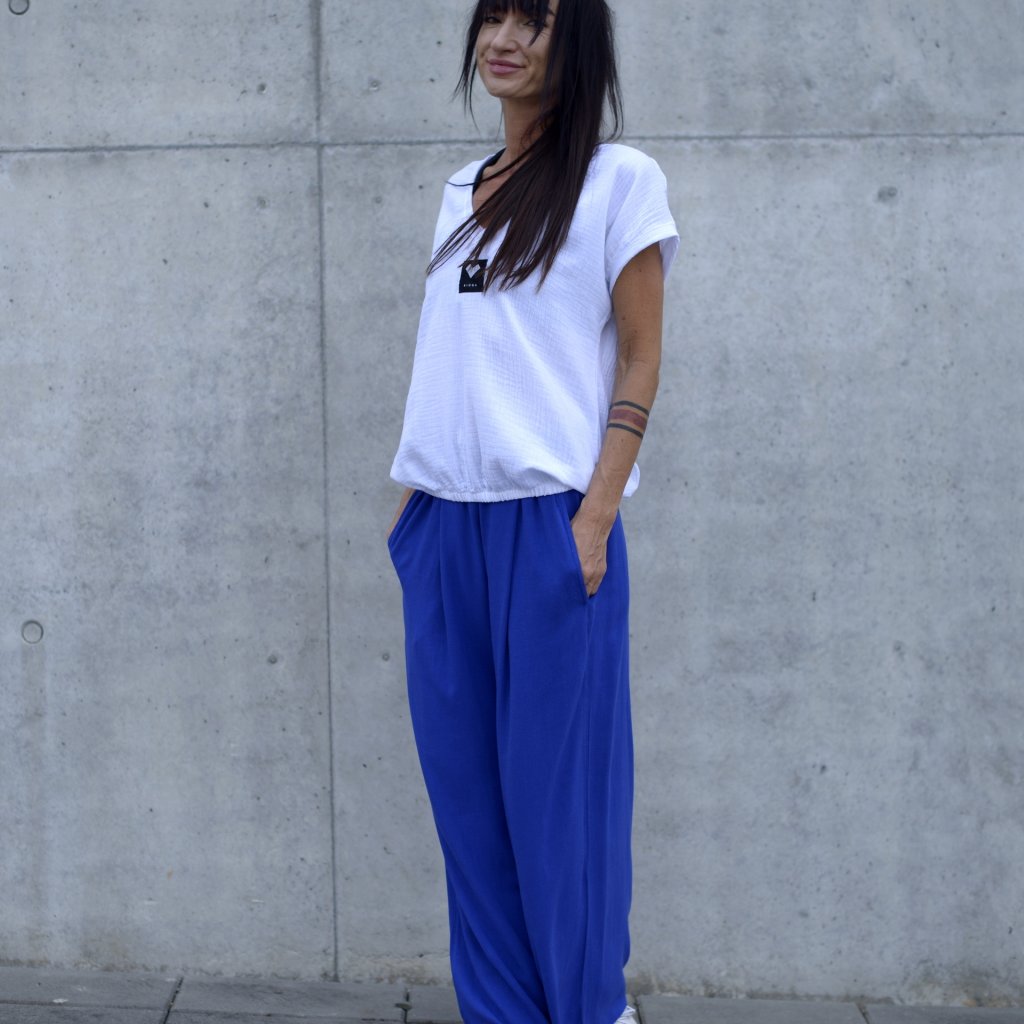 Triko DESEO v oversize střihu, spadený rukáv do manžety, spodní lem zakončený zřasený do gumy.