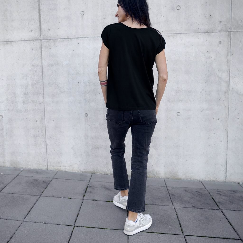Triko LINEN z viskozoveho úpletu - příjemný materiál, pohodlný střih, rukáv s minimalistickým detailem. Triko se dá nosit oboustranně, véčko vpředu véčko vzadu it's up to you